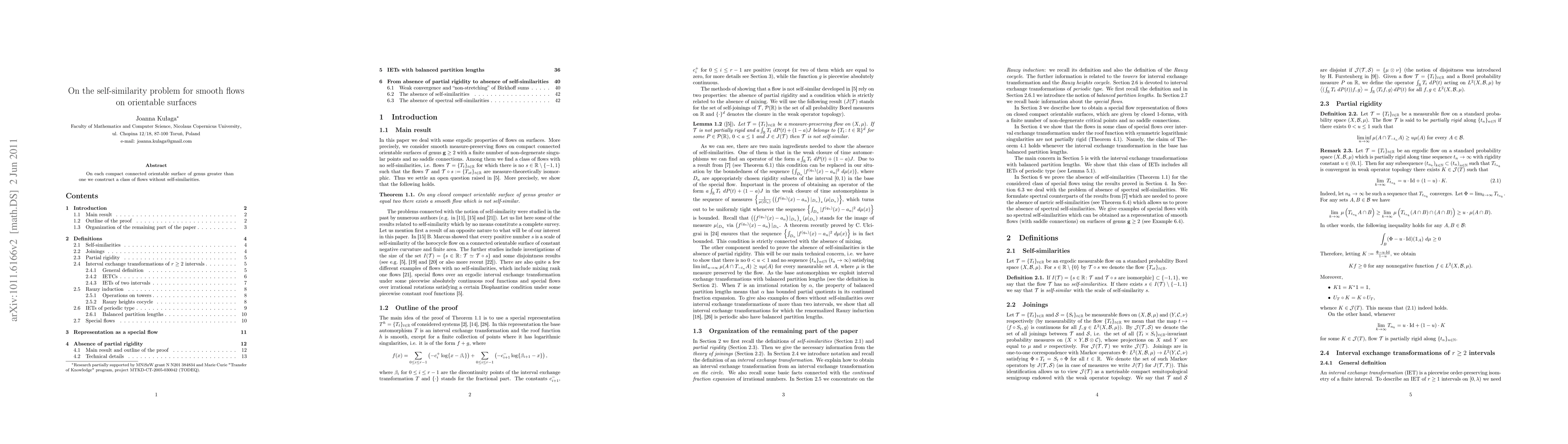 On each compact, connected, orientable surface of genus greater than one we construct a class of flows without self-similarities.