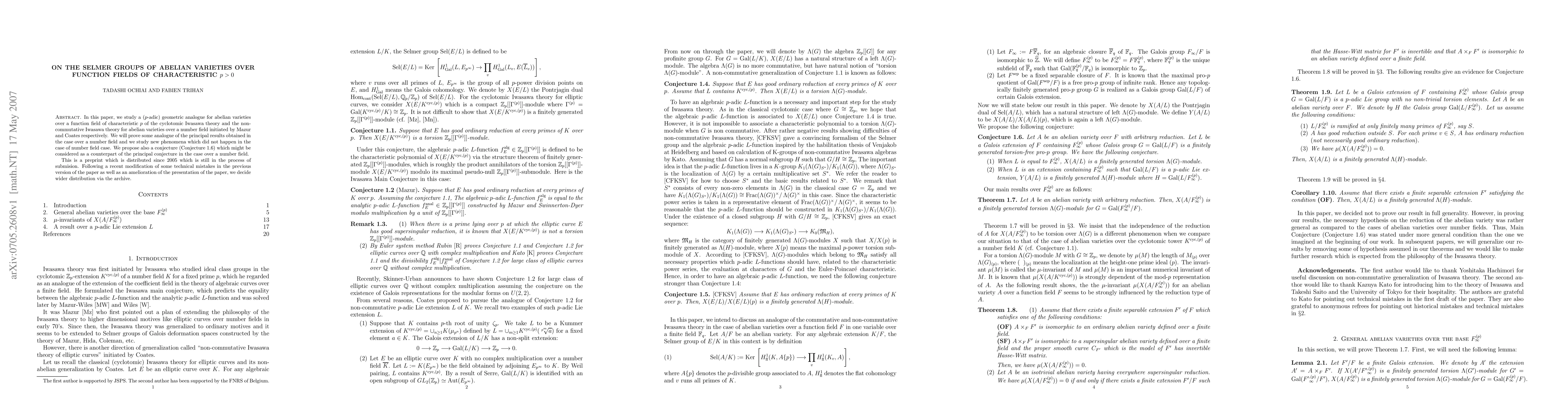 This paper investigates (p-adic) geometric analogues of Iwasawa theory for abelian varieties over function fields of characteristic p, proving new results and proposing a conjecture that parallels findings from number fields. The paper, originally distributed since 2005, has been revised for technical corrections and clearer presentation.