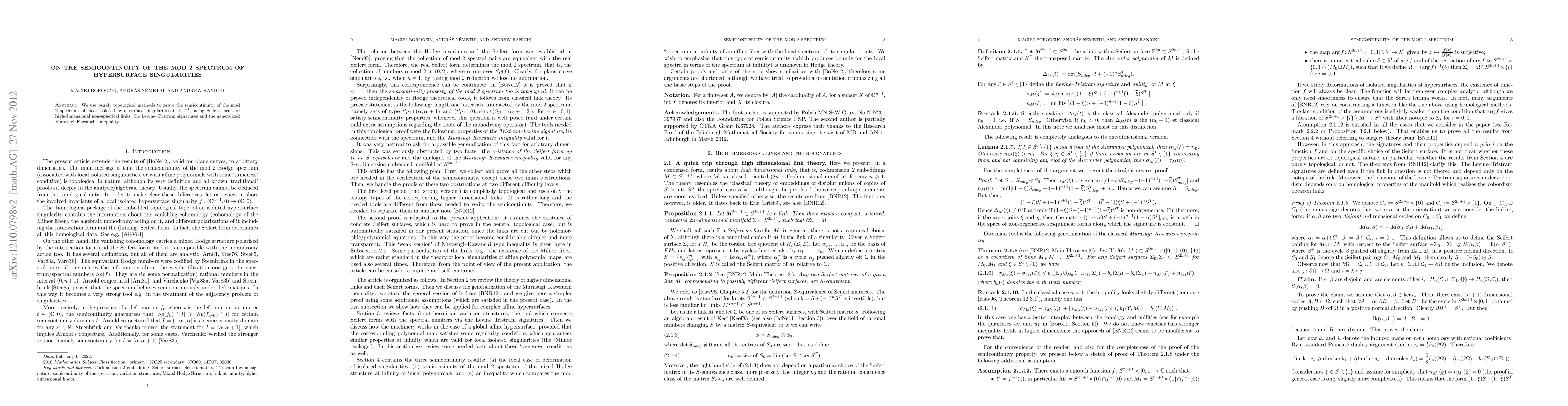 This paper proves the semicontinuity of the mod 2 spectrum for local isolated hypersurface singularities using topological methods, leveraging Seifert forms, Levine-Tristram signatures, and a generalized Murasugi-Kawauchi inequality for cobordisms of links.