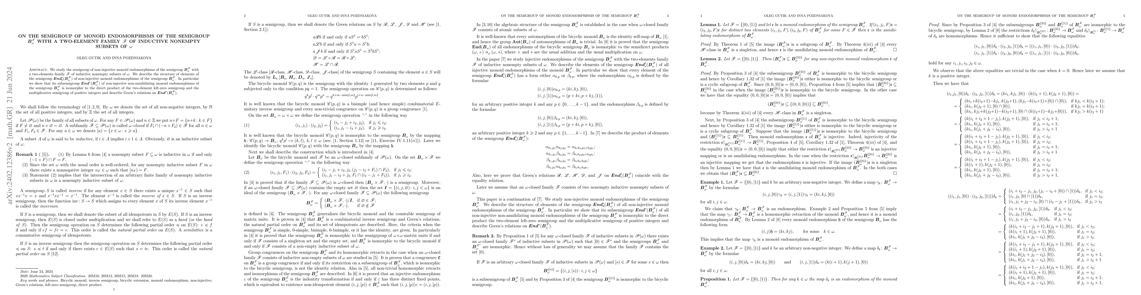 This paper investigates the semigroup of non-injective monoid endomorphisms of a specific semigroup $\boldsymbol{B}_{\omega}^{\mathscr{F}}$. It demonstrates that the subsemigroup of non-injective non-annihilating endomorphisms is isomorphic to the direct product of a two-element left-zero semigroup and the multiplicative semigroup of positive integers, and it describes the Green's relations within this structure.