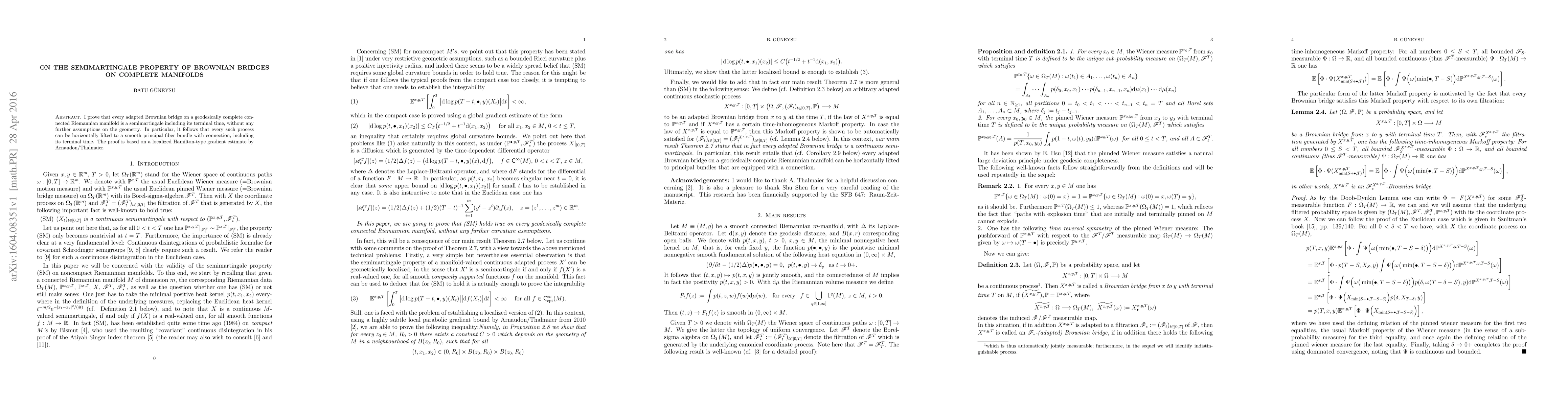 A recent study proves that Brownian bridges on complete manifolds are semimartingales, meaning they can be expressed as the sum of a finite variation process and a local martingale, with no additional assumptions on the geometry.