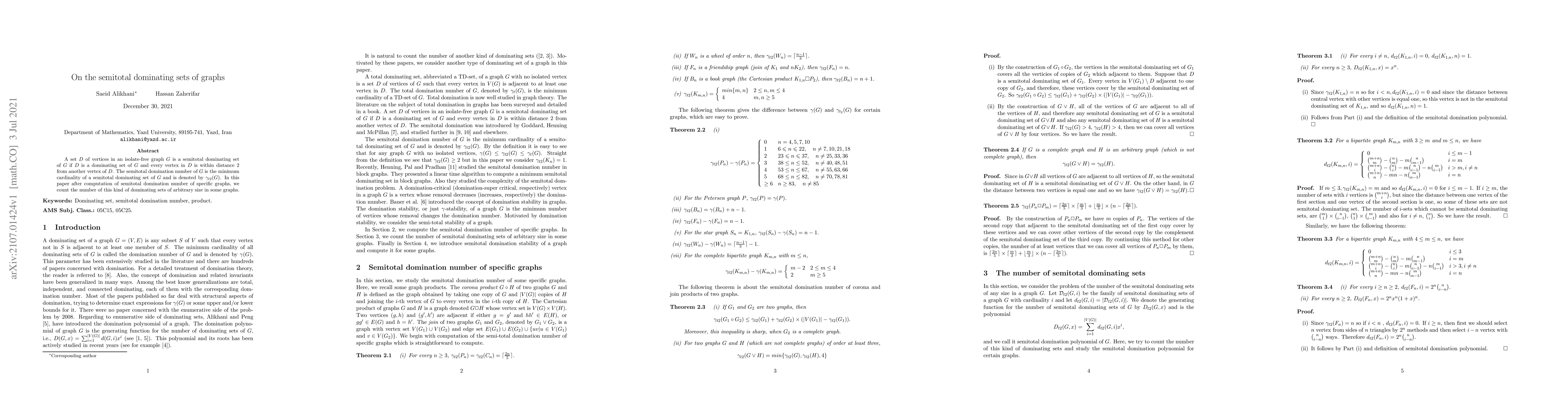 The research focuses on analyzing semitotal dominating sets of graphs, computing their semitotal domination numbers, and counting the number of such dominating sets of arbitrary size in specific graphs.