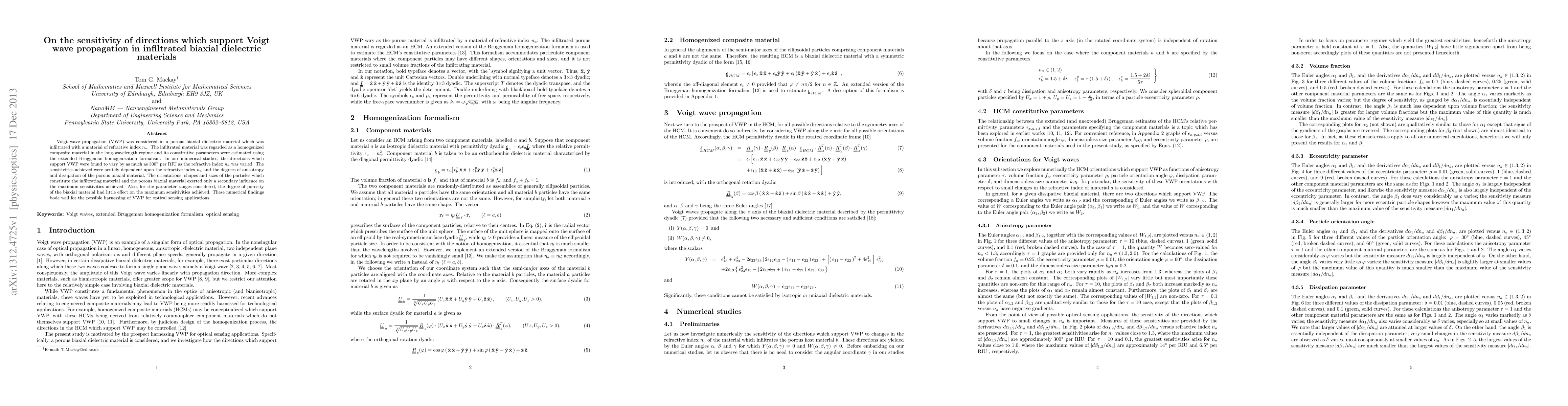 Voigt wave propagation (VWP) was considered in a porous biaxial dielectric material which was infiltrated with a material of refractive index $n_a$. The infiltrated material was regarded as a homogenized composite material in the long-wavelength regime and its constitutive parameters were estimated using the extended Bruggeman homogenization formalism. In our numerical studies, the directions which support VWP were found to vary by as much as $300^\circ$ per RIU as the refractive index $n_a$ was varied. The sensitivities achieved were acutely dependent upon the refractive index $n_a$ and the degrees of anisotropy and dissipation of the porous biaxial material. The orientations, shapes and sizes of the particles which constitute the infiltrating material and the porous biaxial material exerted only a secondary influence on the maximum sensitivities achieved. Also, for the parameter ranges considered, the degree of porosity of the biaxial material had little effect on the maximum sensitivities achieved. These numerical findings bode well for the possible harnessing of VWP for optical sensing applications.