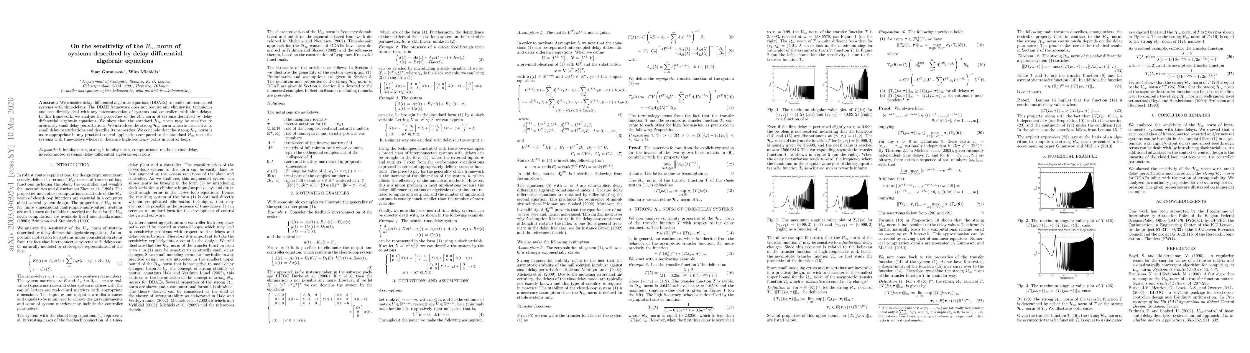 This paper investigates the sensitivity of the H-infinity norm in systems described by delay differential algebraic equations (DDAEs). It introduces the strong H-infinity norm, which is less sensitive to small delay perturbations, and argues that it is more suitable for practical control applications involving time-delays.