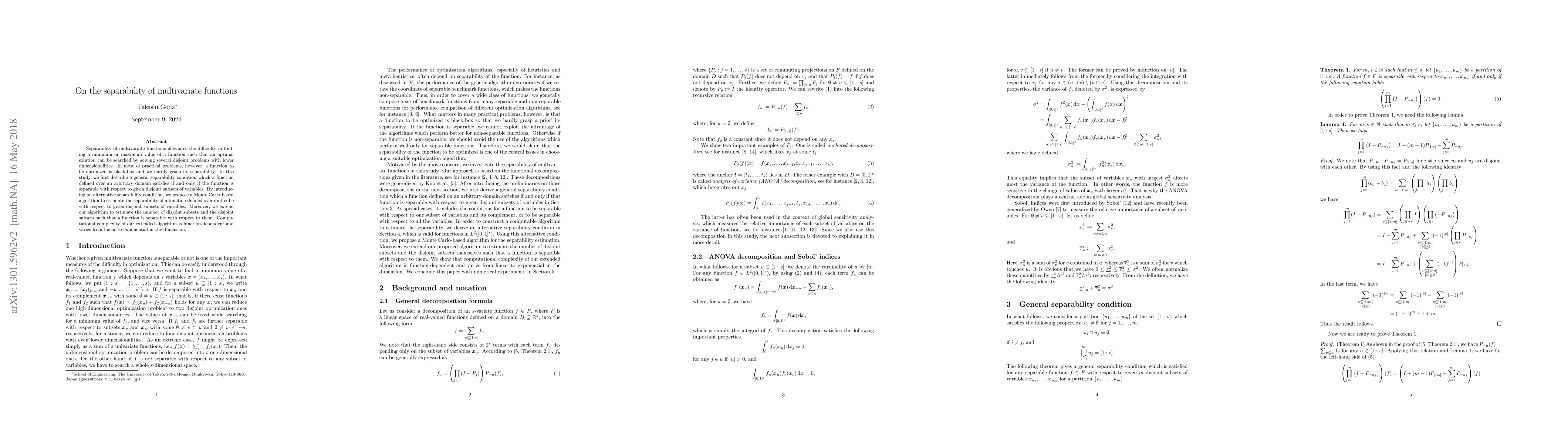 Researchers develop a method to estimate the separability of multivariate functions, allowing for efficient optimization, with implications for complex problems in various fields.