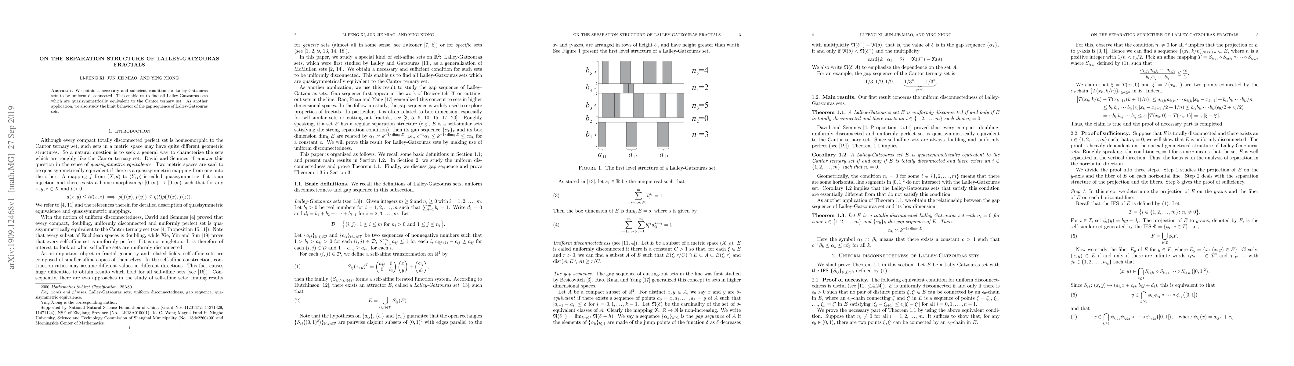 This paper establishes a necessary and sufficient condition for Lalley-Gatzouras fractals to be uniformly disconnected, identifying those equivalent to the Cantor set. Additionally, it examines the limit behavior of the gap sequence in Lalley-Gatzouras sets.