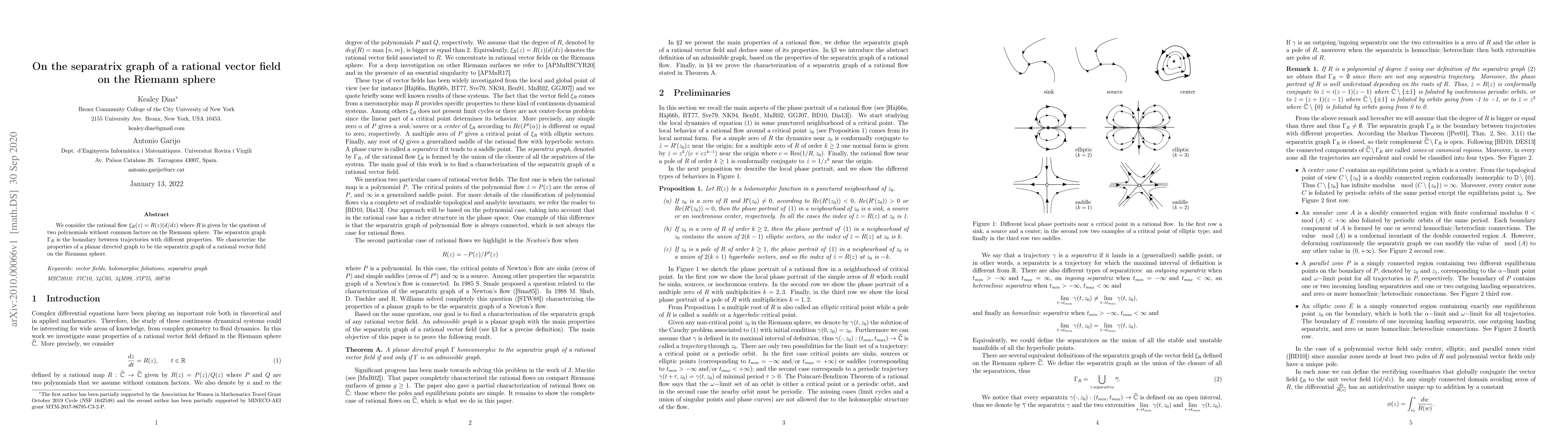 This paper investigates the separatrix graph $\Gamma_R$ of a rational vector field $\xi_R(z)$ on the Riemann sphere, characterizing its properties and establishing conditions for it to be homeomorphic to a planar directed graph. The focus is on the boundary between trajectories with distinct behaviors.