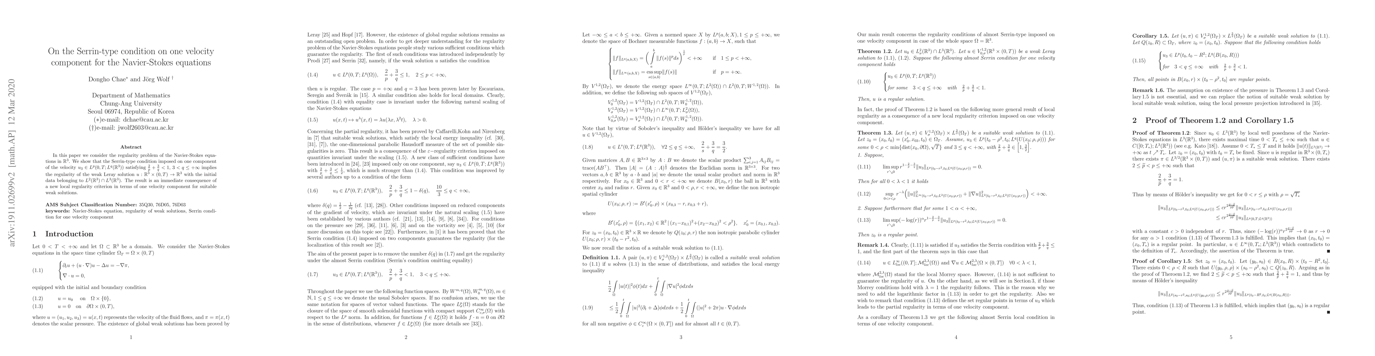 A new local regularity criterion ensures the Navier-Stokes solution is regular when one velocity component meets a specific condition.