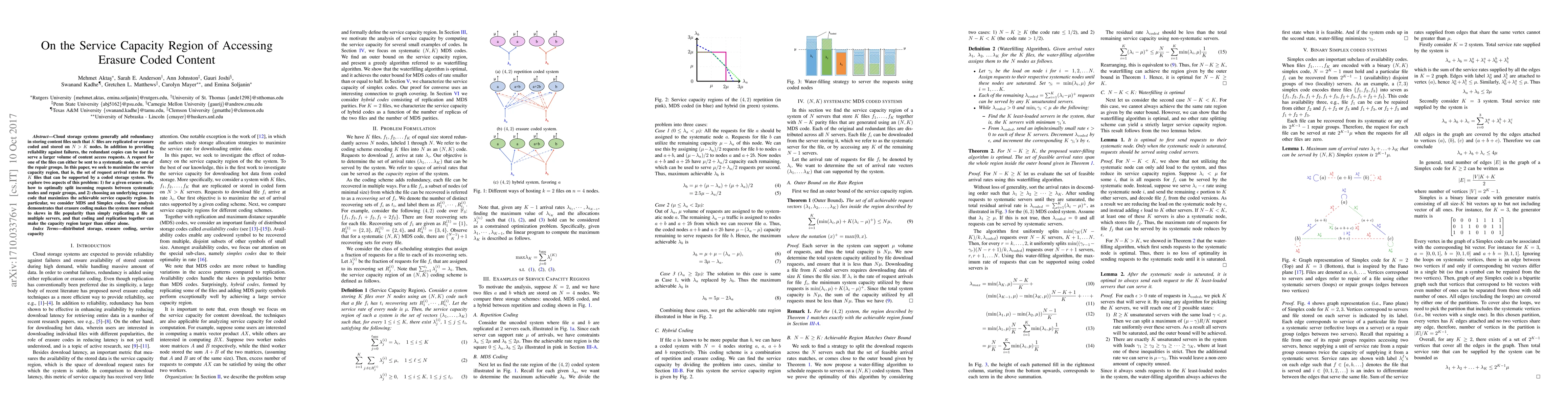 This paper explores maximizing the service capacity of erasure-coded storage systems, optimally distributing request loads between systematic nodes and repair groups. It compares MDS and Simplex codes, finding that erasure coding enhances robustness against file popularity skews, and combining coding with replication yields greater capacity than either alone.