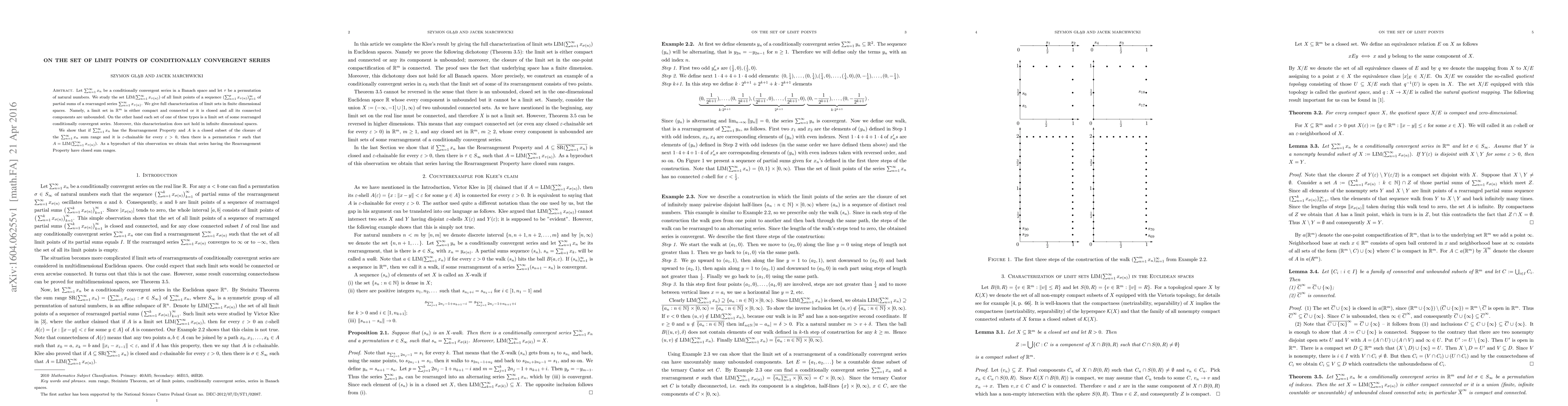 A study on limit points of conditionally convergent series in Banach spaces reveals that limit sets can be compact and connected or closed with unbounded connected components, but not in infinite dimensional spaces.