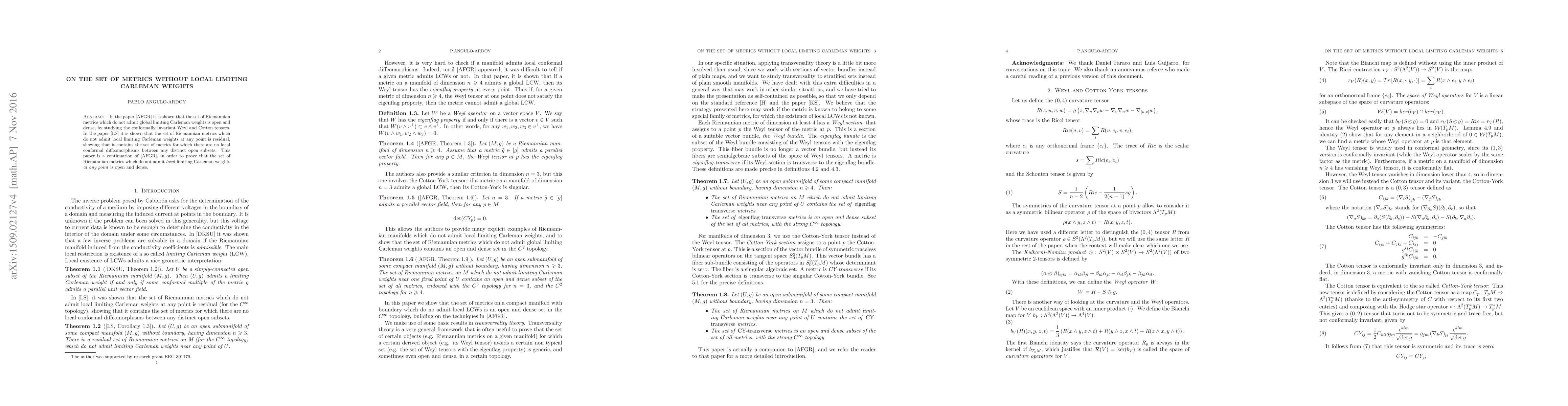 In the paper arXiv:1411.4887 [math.AP] it is shown that the set of Riemannian metrics which do not admit global limiting Carleman weights is open and dense, by studying the conformally invariant Weyl and Cotton tensors. In the paper arXiv:1011.2507 [math.DG] it is shown that the set of Riemannian metrics which do not admit local limiting Carleman weights at any point is residual, showing that it contains the set of metrics for which there are no local conformal diffeomorphisms between any distinct open subsets. This paper is a continuation of arXiv:1411.4887 [math.AP] in order to prove that the set of Riemannian metrics which do not admit local limiting Carleman weights \emph{at any point} is open and dense.