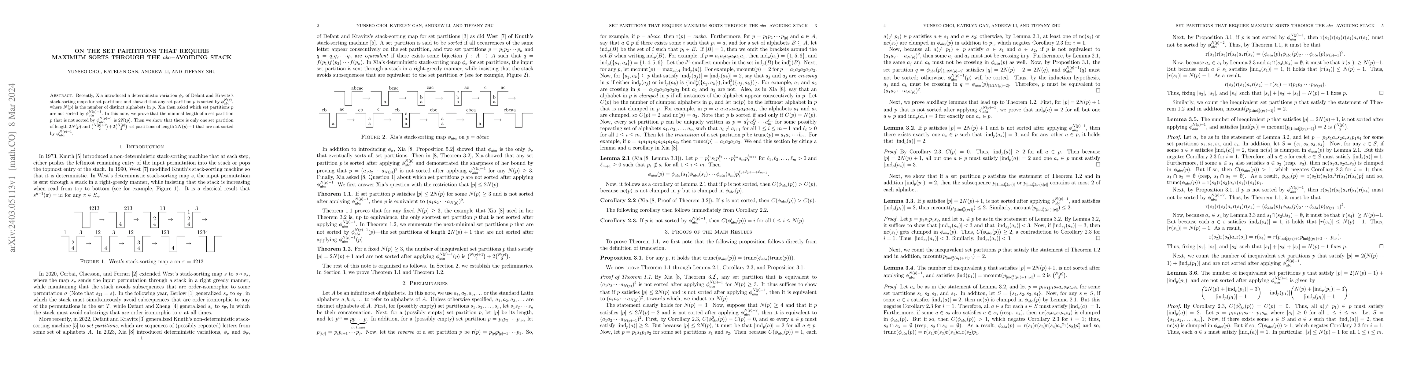 Recently, Xia introduced a deterministic variation $\phi_{\sigma}$ of Defant and Kravitz's stack-sorting maps for set partitions and showed that any set partition $p$ is sorted by $\phi^{N(p)}_{aba}$, where $N(p)$ is the number of distinct alphabets in $p$. Xia then asked which set partitions $p$ are not sorted by $\phi_{aba}^{N(p)-1}$. In this note, we prove that the minimal length of a set partition $p$ that is not sorted by $\phi_{aba}^{N(p)-1}$ is $2N(p)$. Then we show that there is only one set partition of length $2N(p)$ and ${{N(p) + 1} \choose 2} + 2{N(p) \choose 2}$ set partitions of length $2N(p)+1$ that are not sorted by $\phi_{aba}^{N(p)-1}$.