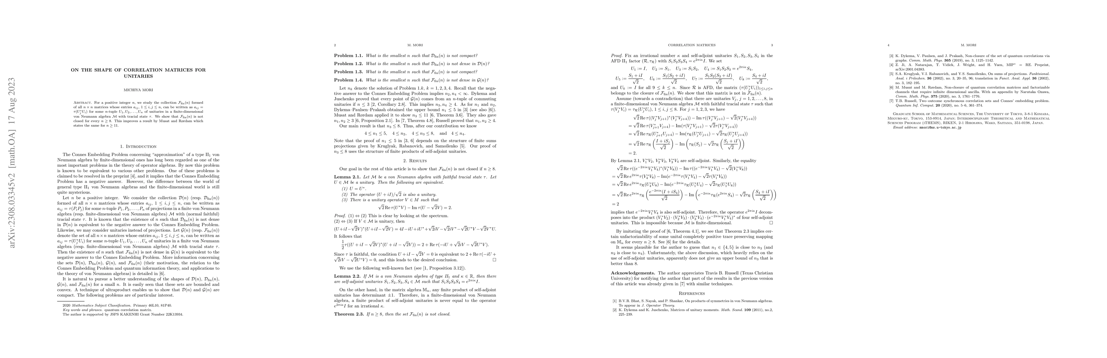 This paper investigates the set $\mathcal{F}_{\mathrm{fin}}(n)$ of $n\times n$ matrices formed by correlations between unitaries in a finite-dimensional von Neumann algebra, showing that it is not closed for $n\geq 8$, improving upon a prior result for $n\geq 11$.