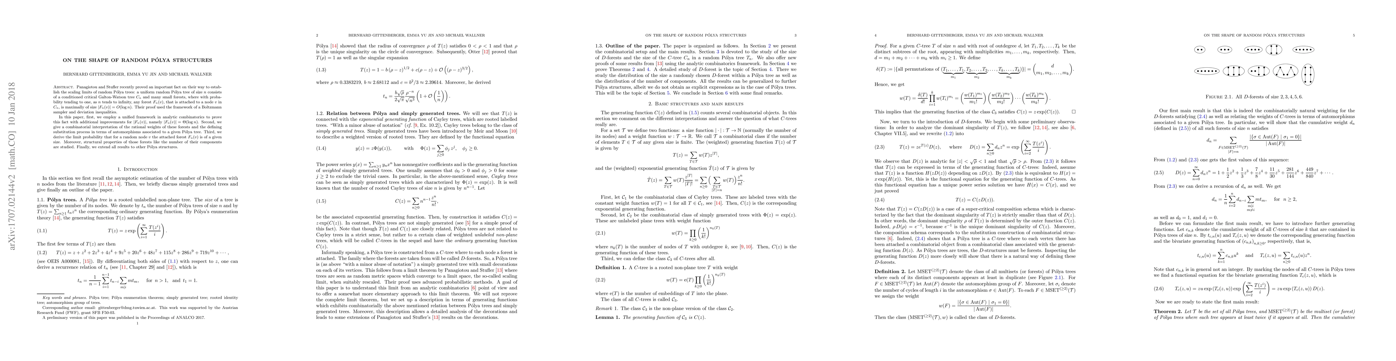 Panagiotou and Stufler recently proved an important fact on their way to establish the scaling limits of random P\'olya trees: a uniform random P\'olya tree of size $n$ consists of a conditioned critical Galton-Watson tree $C_n$ and many small forests, where with probability tending to one, as $n$ tends to infinity, any forest $F_n(v)$, that is attached to a node $v$ in $C_n$, is maximally of size $\vert F_n(v)\vert=O(\log n)$. Their proof used the framework of a Boltzmann sampler and deviation inequalities. In this paper, first, we employ a unified framework in analytic combinatorics to prove this fact with additional improvements for $\vert F_n(v)\vert$, namely $\vert F_n(v)\vert=\Theta(\log n)$. Second, we give a combinatorial interpretation of the rational weights of these forests and the defining substitution process in terms of automorphisms associated to a given P\'olya tree. Third, we derive the limit probability that for a random node $v$ the attached forest $F_n(v)$ is of a given size. Moreover, structural properties of those forests like the number of their components are studied. Finally, we extend all results to other P\'olya structures.