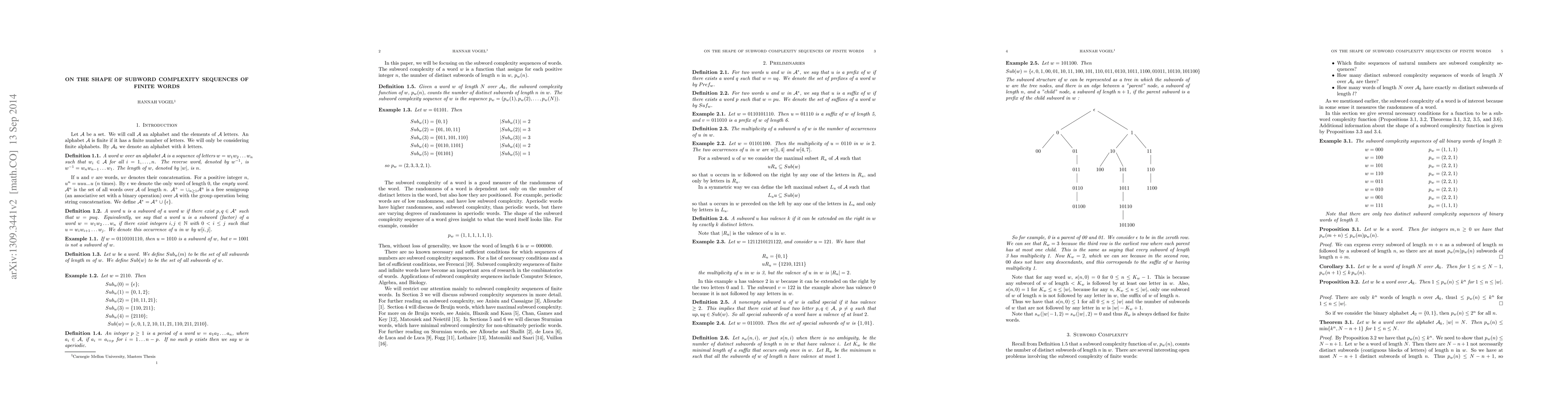 This paper investigates the properties and shapes of subword complexity sequences, which measure the distinct subwords of varying lengths in a given finite word, to assess randomness and structural insight. It examines influencing factors and conjectures on the growth of distinct sequences for different word lengths and alphabets.