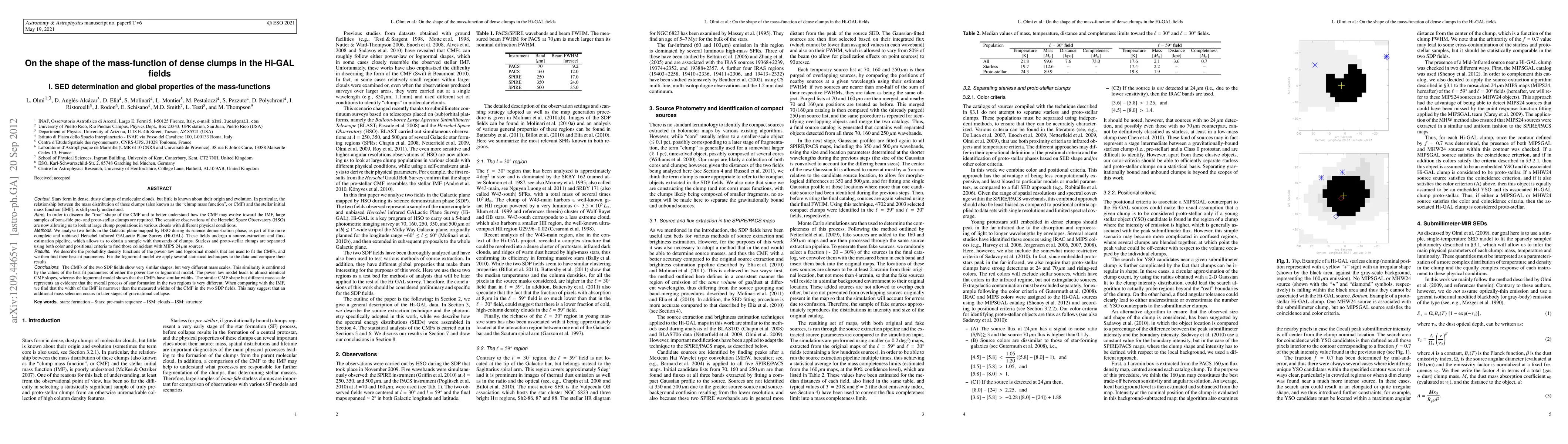 This paper investigates the mass distribution of dense clumps in molecular clouds using Herschel Space Observatory data from two Hi-GAL fields. It finds that the clump mass functions (CMF) in both fields have similar shapes but different mass scales, suggesting distinct star formation processes across regions.