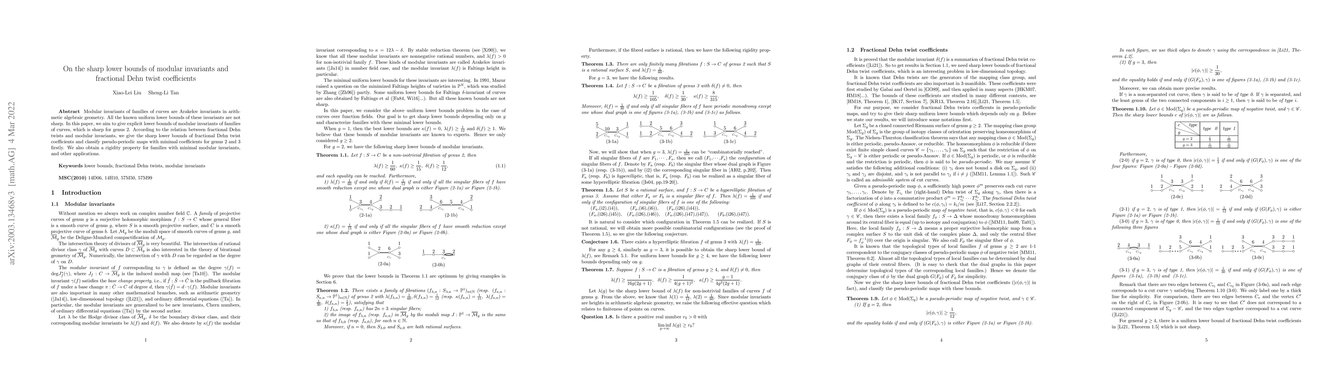 This paper establishes sharp lower bounds for modular invariants of families of curves, specifically for genus 2, and extends this to classify fractional Dehn twist coefficients for genus 2 and 3. It also introduces a rigidity property for families with minimal modular invariants and discusses additional applications.