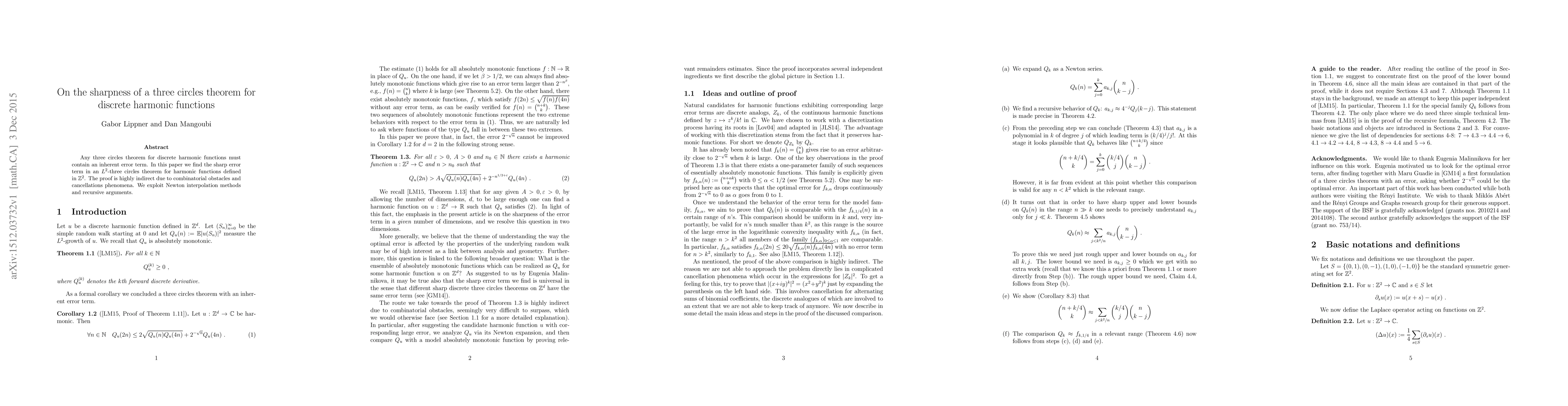 This paper determines the precise error term in an $L^2$-three circles theorem for discrete harmonic functions on $\Zb^2$, addressing inherent errors through Newton interpolation methods and recursive techniques, overcoming combinatorial challenges.