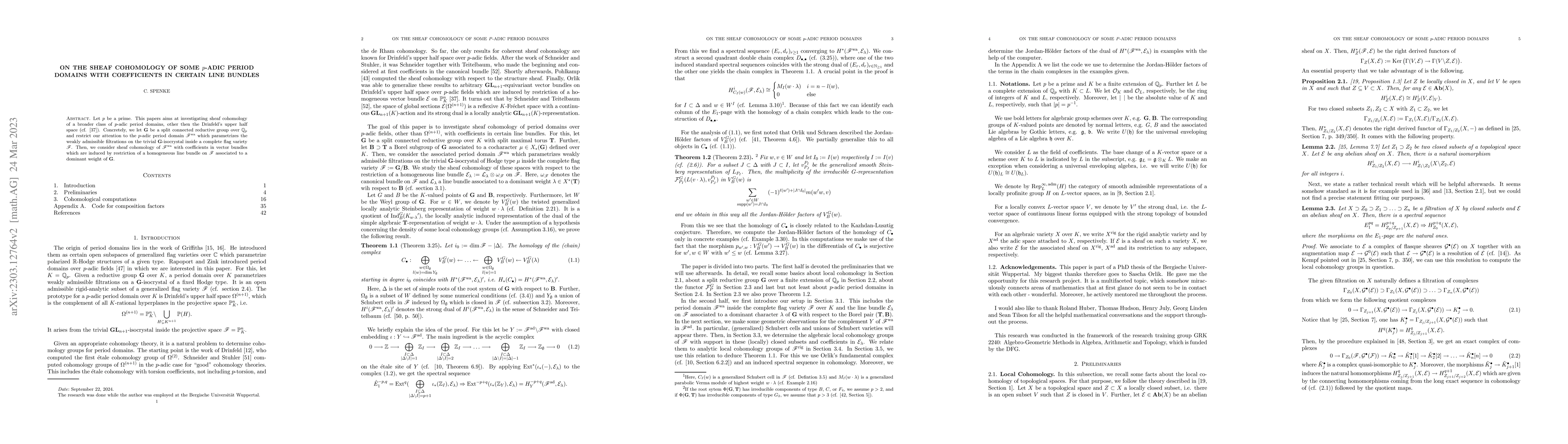 This paper investigates the sheaf cohomology of $p$-adic period domains, specifically $\mathscr{F}^{\mathrm{wa}}$, which parametrizes weakly admissible filtrations on $\mathbf{G}$-isocrystals. It examines the cohomology with coefficients in vector bundles derived from homogeneous line bundles on $\mathscr{F}$.
