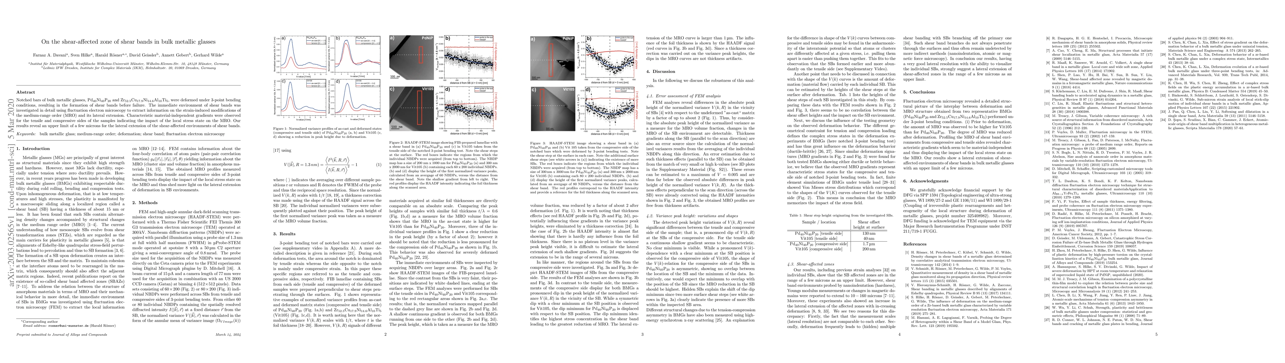 This study investigates the shear-affected zone around shear bands in bulk metallic glasses using notched bars deformed under 3-point bending. Fluctuation electron microscopy reveals material-independent gradients and an upper limit of a few microns for the lateral extension of the shear-affected zones, highlighting the impact of local stress on medium-range order modifications.