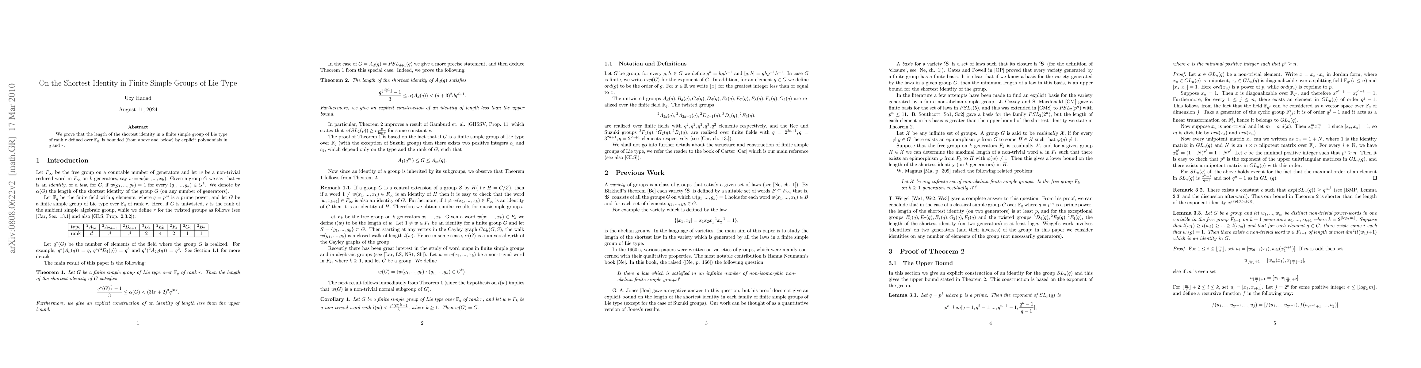Researchers prove that the length of the shortest identity in finite simple groups of Lie type can be bounded by explicit polynomials in q and r, offering new insights into group theory.