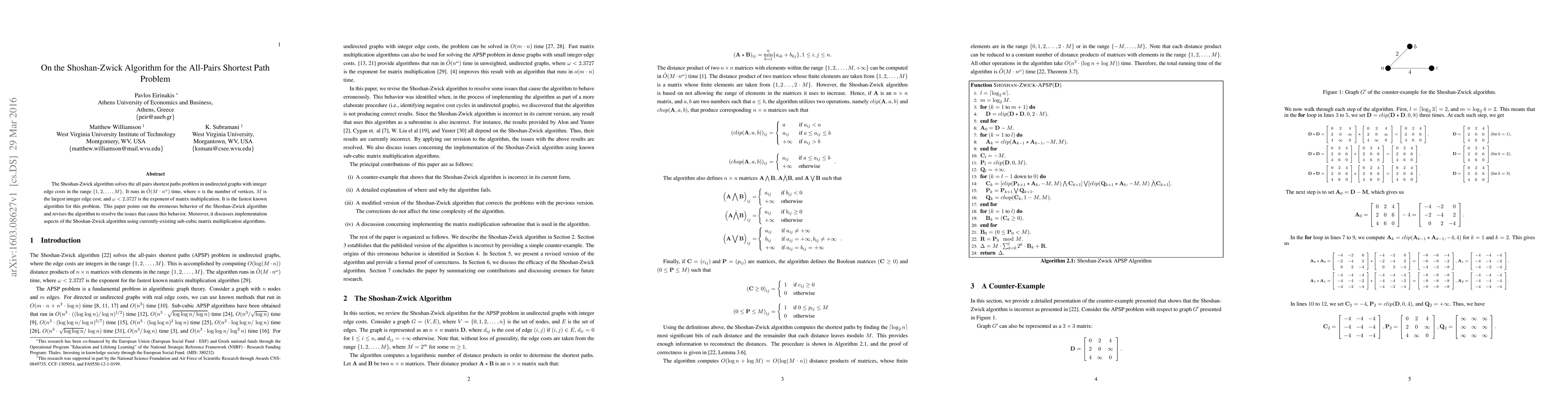 The Shoshan-Zwick algorithm is revised to resolve issues that cause erroneous behavior in its original form, while maintaining a time complexity of π(M × n^υ), making it the fastest known solution for the all-pairs shortest path problem.