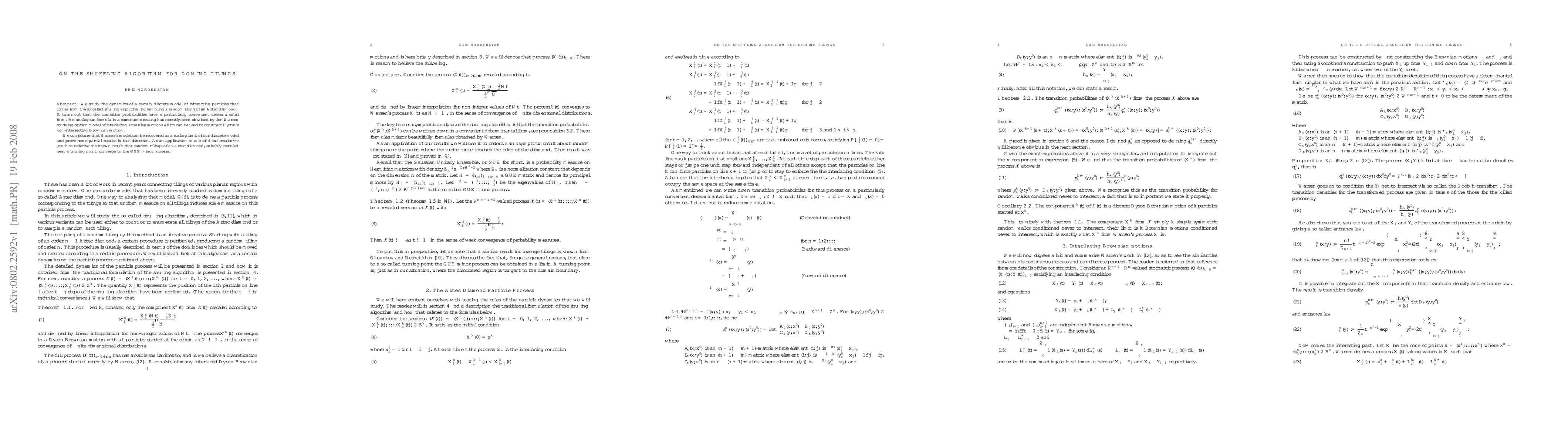 We study the dynamics of a certain discrete model of interacting particles that comes from the so called shuffling algorithm for sampling a random tiling of an Aztec diamond. It turns out that the transition probabilities have a particularly convenient determinantal form. An analogous formula in a continuous setting has recently been obtained by Jon Warren studying certain model of interlacing Brownian motions which can be used to construct Dyson's non-intersecting Brownian motion. We conjecture that Warren's model can be recovered as a scaling limit of our discrete model and prove some partial results in this direction. As an application to one of these results we use it to rederive the known result that random tilings of an Aztec diamond, suitably rescaled near a turning point, converge to the GUE minor process.