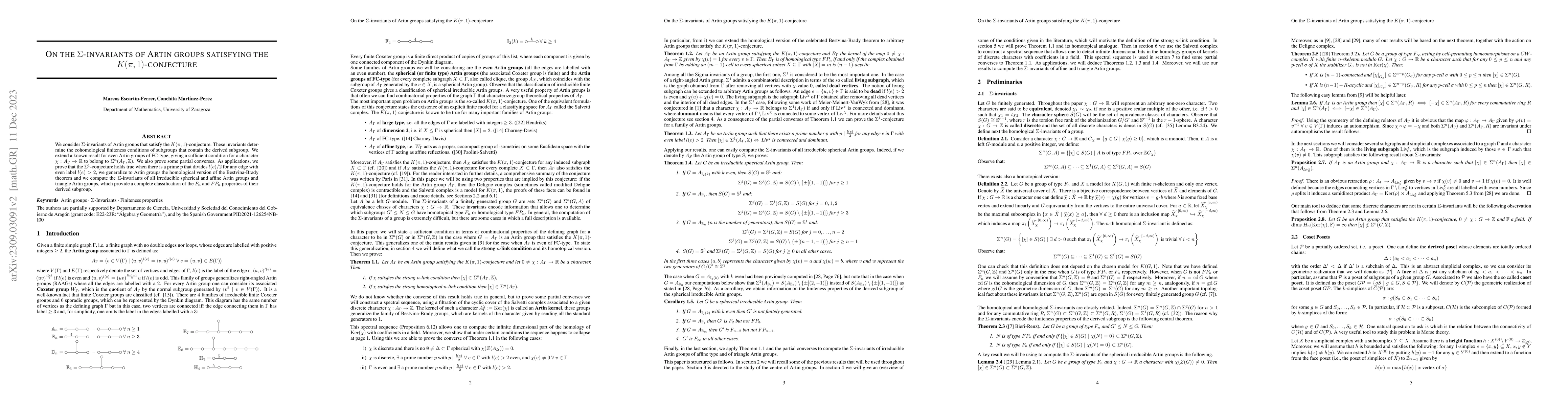 This paper explores $\Sigma$-invariants of Artin groups adhering to the $K(\pi,1)$-conjecture, establishing conditions for certain characters to belong to $\Sigma^n$ and proving the $\Sigma^1$-conjecture under specific prime divisibility conditions. It also classifies the $F_n$ and $FP_n$ properties of derived subgroups for various irreducible spherical, affine, and triangle Artin groups.