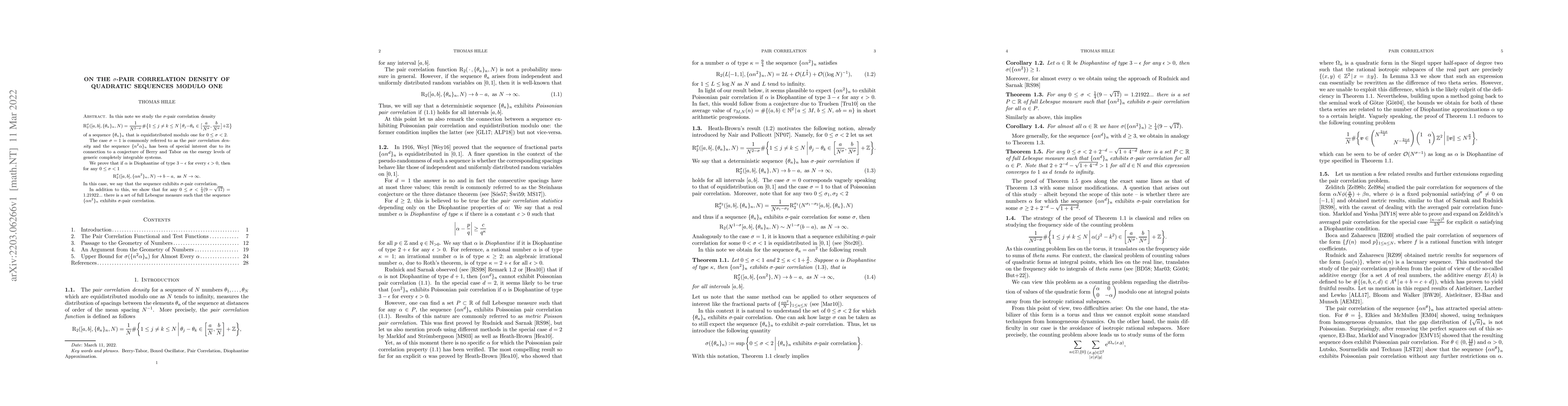 In this note we study the $\sigma$-pair correlation density \begin{equation*}R_2^\sigma([a,b], \{ \theta_n \}_n, N)= \frac{1}{N^{2-\sigma}} \# \big \{ 1 \leq j \neq k \leq N \, \big| \, \theta_{j} - \theta_{k} \in \big [ \frac{a}{N^\sigma},\frac{b}{N^\sigma} \big ]+ \mathbb Z \big \} \end{equation*} of a sequence $\{ \theta_n\}_n$ that is equidistributed modulo one for $0 \leq \sigma <2$. The case $\sigma=1$ is commonly referred to as the pair correlation density and the sequence $\{ n^2 \alpha \}_n$ has been of special interest due to its connection to a conjecture of Berry and Tabor on the energy levels of generic completely integrable systems. We prove that if $\alpha$ is Diophantine of type $3-\epsilon$ for every $\epsilon>0$, then for any $0 \leq \sigma <1$ \begin{align*} \mathrm R_2^\sigma([a,b], \{ \alpha n^2 \}_n, N) \to b-a, \text{ as } N \to \infty. \end{align*} In this case, we say that the sequence exhibits $\sigma$-pair correlation. In addition to this, we show that for any $0 \leq \sigma < \frac{1}{4}(9 -\sqrt{17})=1.21922...$ there is a set of full Lebesgue measure such that the sequence $\{ \alpha n^2 \}_n$ exhibits $\sigma$-pair correlation.