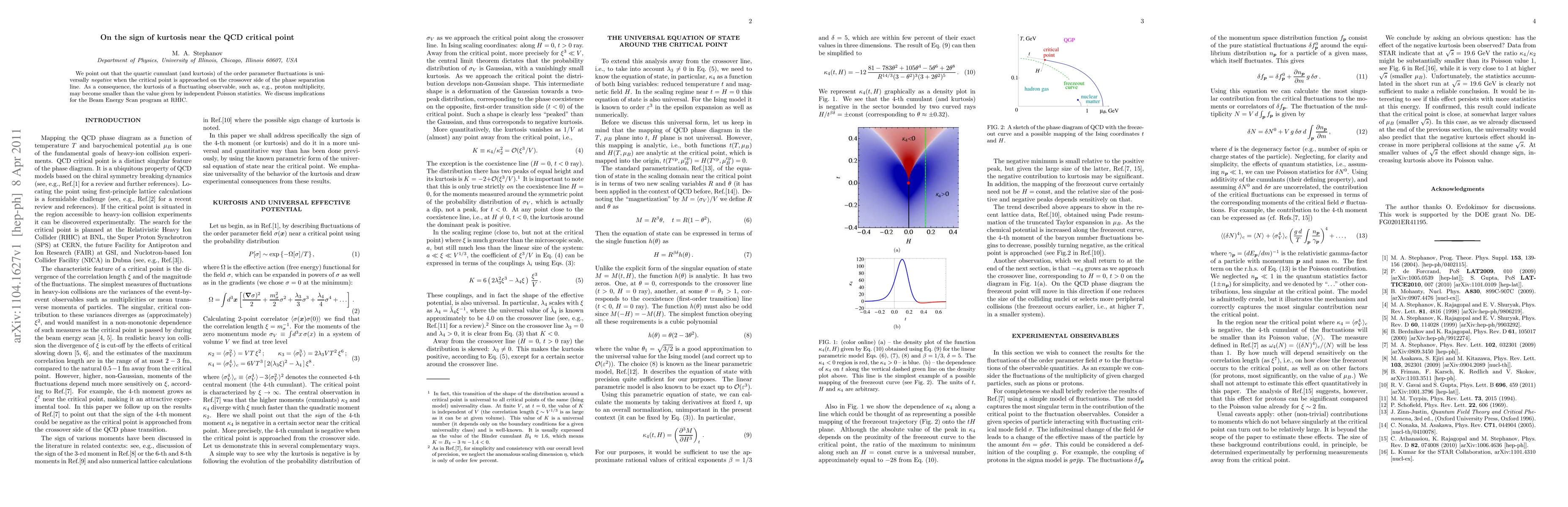 We point out that the quartic cumulant (and kurtosis) of the order parameter fluctuations is universally negative when the critical point is approached on the crossover side of the phase separation line. As a consequence, the kurtosis of a fluctuating observable, such as, e.g., proton multiplicity, may become smaller than the value given by independent Poisson statistics. We discuss implications for the Beam Energy Scan program at RHIC.