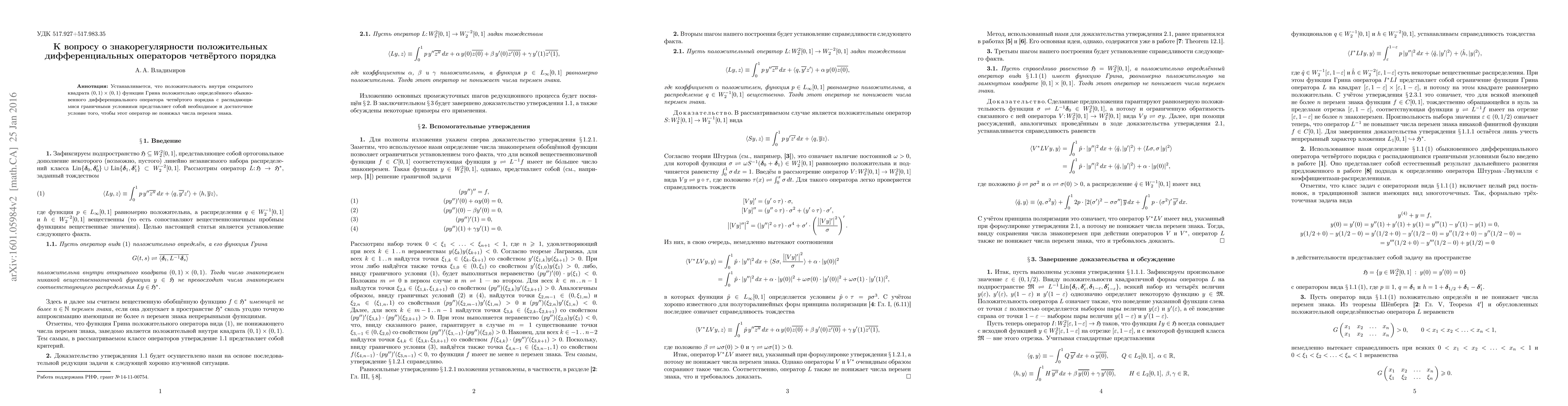 It is shown that positivity in $(0,1)\times (0,1)$ of Green function of positively defined fourth-order ordinary differential operator (with separated boundary conditions) is a criterium of sign-regularity of this operator.
