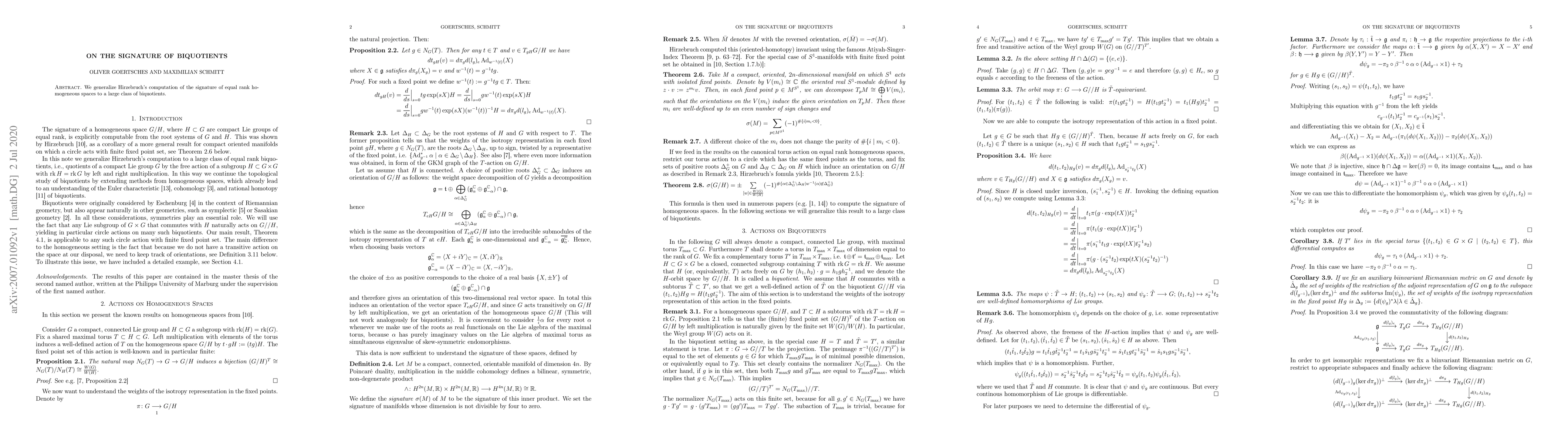 We generalize Hirzebruch's computation of the signature of equal rank homogeneous spaces to a large class of biquotients.