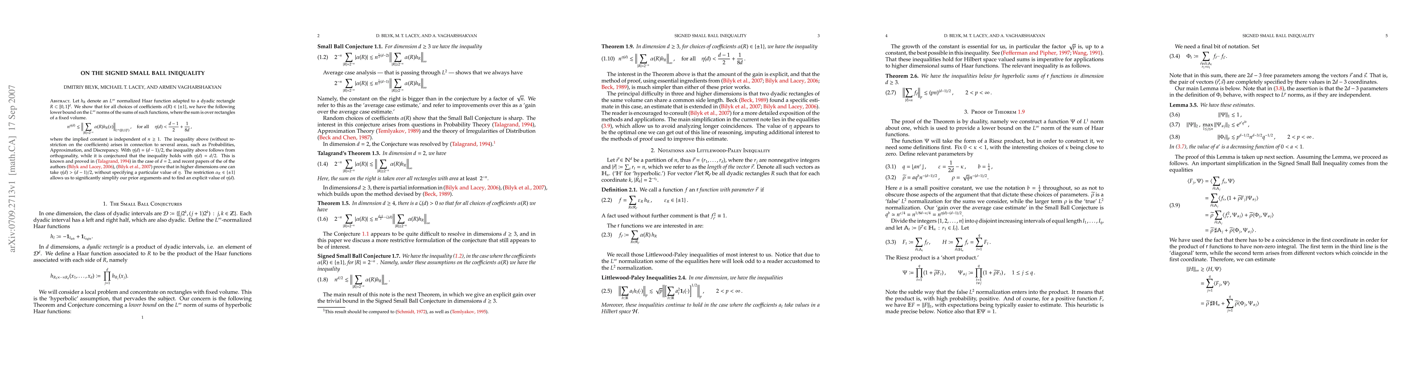 Researchers have developed a new inequality bound called the Signed Small Ball Inequality, which provides a more explicit and efficient solution to a problem in mathematics, building on previous work.