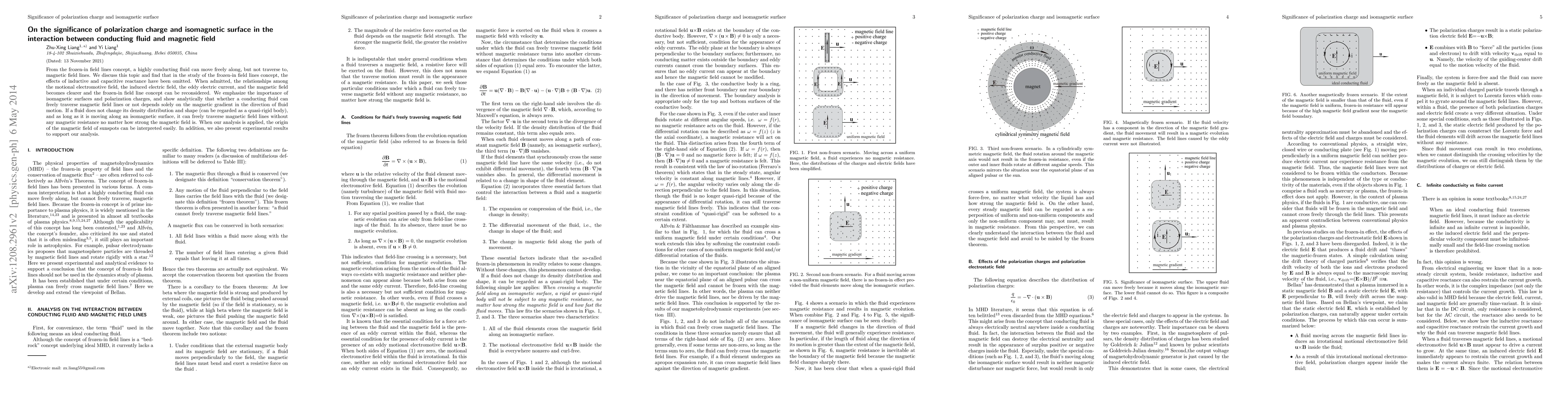 This paper explores the interaction between highly conducting fluids and magnetic fields, emphasizing the significance of polarization charge and isomagnetic surfaces. It reveals that the frozen-in field lines concept can be reconsidered when inductive and capacitive reactance effects are included, showing that fluid motion along isomagnetic surfaces allows free traversal of magnetic field lines without magnetic resistance.