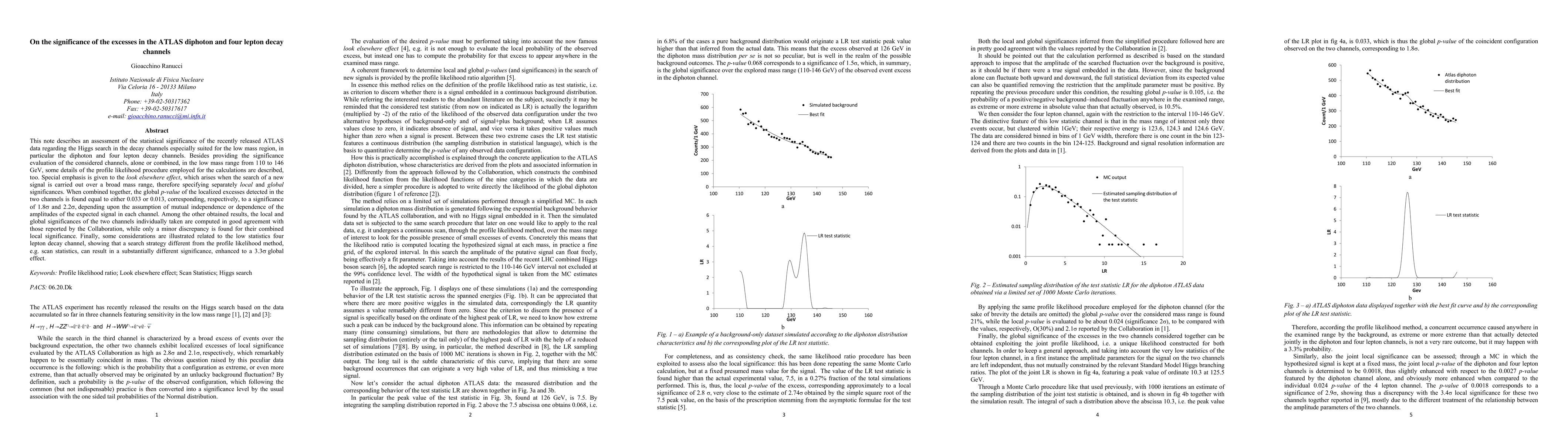 This study evaluates the statistical significance of ATLAS Higgs search data in diphoton and four lepton decay channels, focusing on the low mass range. Using profile likelihood and considering the look-elsewhere effect, the combined global p-value for localized excesses is found to be 0.033 (1.8 sigma) or 0.013 (2.2 sigma), depending on signal independence assumption. The research also highlights that alternative search strategies, like scan statistics, could enhance the significance in the low-statistics four lepton channel to 3.3 sigma globally.