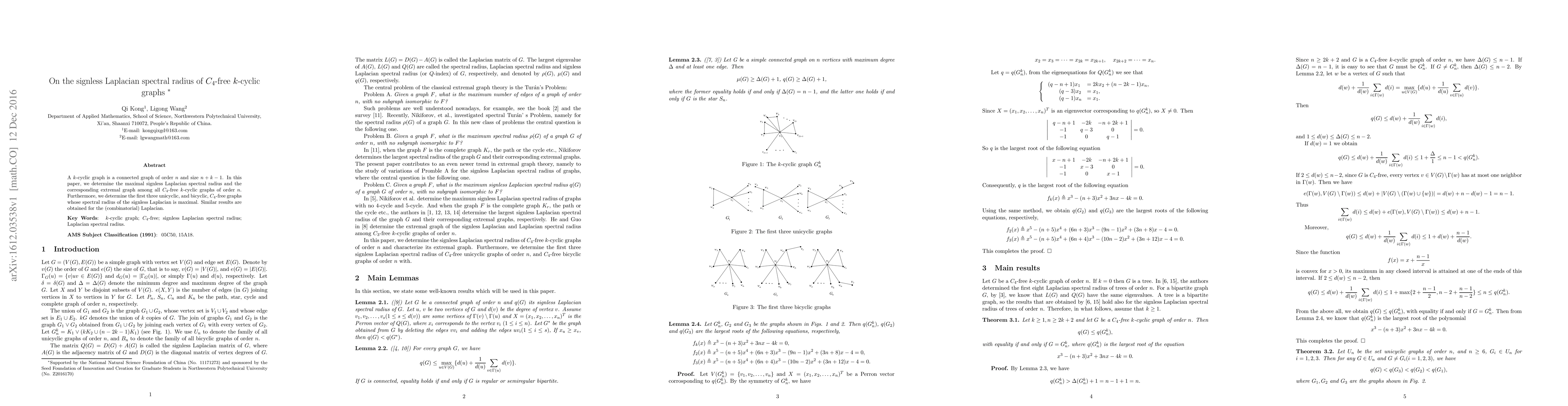This paper identifies the graph with the maximum signless Laplacian spectral radius among $C_{4}$-free $k$-cyclic graphs, determining both extremal graphs and the first three unicyclic and bicyclic graphs achieving this maximum. Similar findings are reported for the combinatorial Laplacian spectral radius.