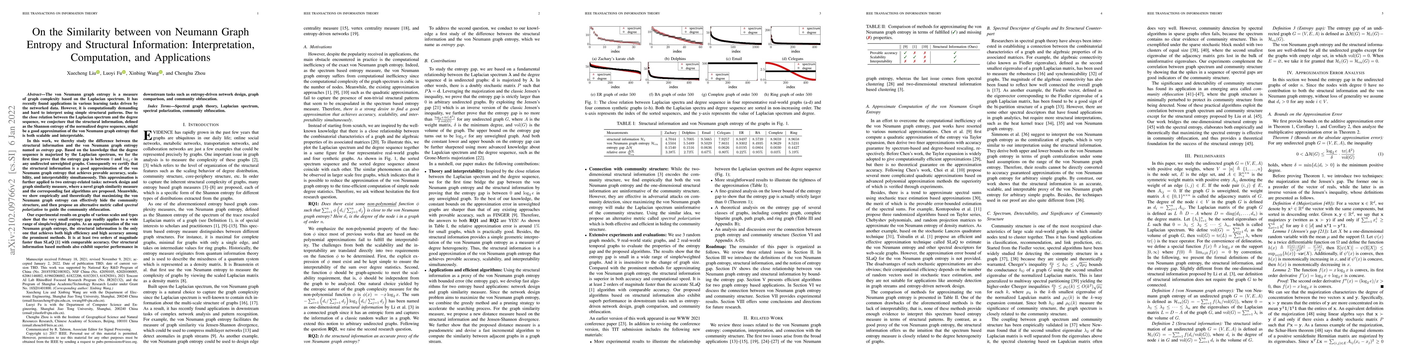 This paper proposes that structural information, defined as the Shannon entropy of the normalized degree sequence, can approximate von Neumann graph entropy effectively. It proves that the entropy gap between these two measures is bounded, confirming the structural information's accuracy, scalability, and interpretability, and demonstrates its application in network design and graph similarity measures with superior performance.
