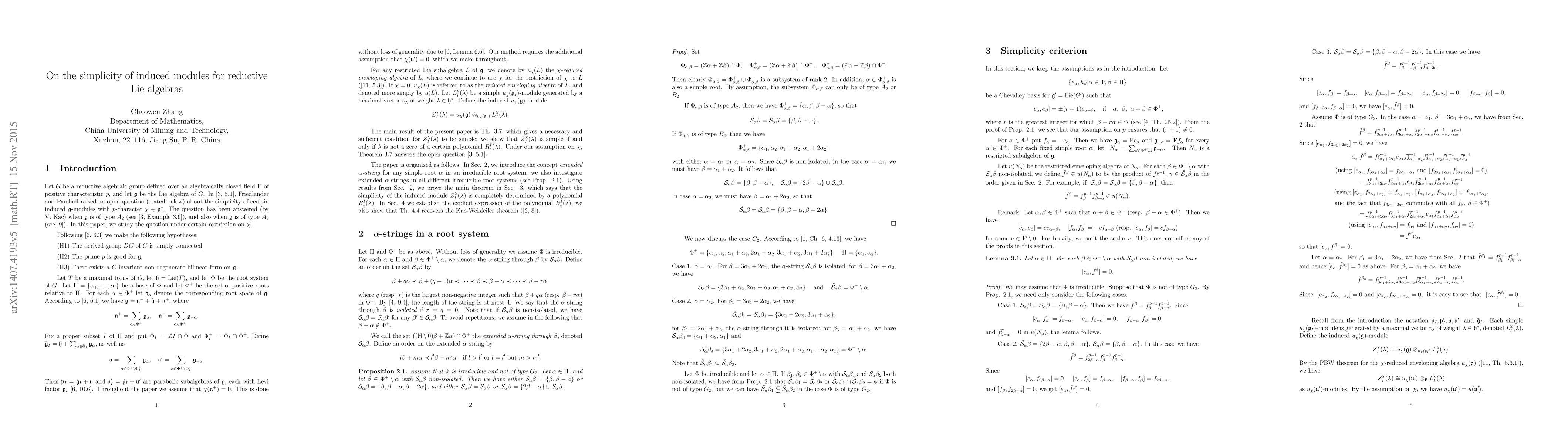 Summary: This paper investigates the simplicity of induced modules for reductive Lie algebras in positive characteristic, providing a necessary and sufficient condition for the modules to be simple.