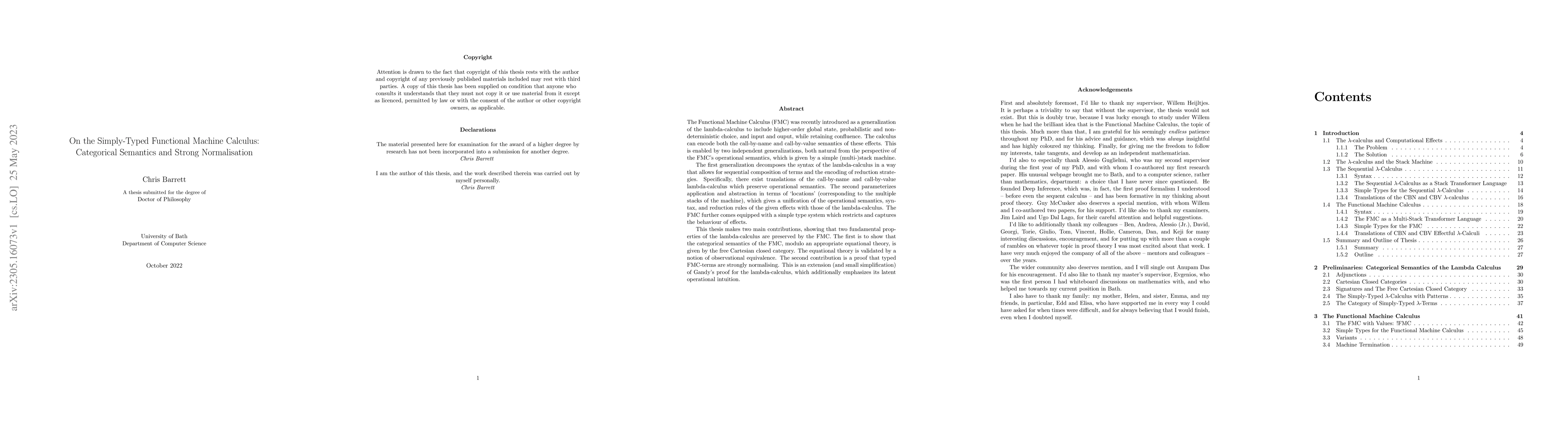 The Functional Machine Calculus (FMC) was recently introduced as a generalization of the lambda-calculus to include higher-order global state, probabilistic and non-deterministic choice, and input and output, while retaining confluence. The calculus can encode both the call-by-name and call-by-value semantics of these effects. This is enabled by two independent generalisations, both natural from the perspective of the FMC's operational semantics, which is given by a simple multi-stack machine. The first generalization decomposes the syntax of the lambda-calculus in a way that allows for sequential composition of terms and the encoding of reduction strategies. Specifically, there exist translations of the call-by-name and call-by-value lambda-calculus which preserve operational semantics. The second parameterizes application and abstraction in terms of 'locations' (corresponding to the multiple stacks of the machine), which gives a unification of the operational semantics, syntax, and reduction rules of the given effects with those of the lambda-calculus. The FMC further comes equipped with a simple type system which restricts and captures the behaviour of effects. This thesis makes two main contributions, showing that two fundamental properties of the lambda-calculus are preserved by the FMC. The first is to show that the categorical semantics of the FMC, modulo an appropriate equational theory, is given by the free Cartesian closed category. The equational theory is validated by a notion of observational equivalence. The second contribution is a proof that typed FMC-terms are strongly normalising. This is an extension (and small simplification) of Gandy's proof for the lambda-calculus, which additionally emphasizes its latent operational intuition.