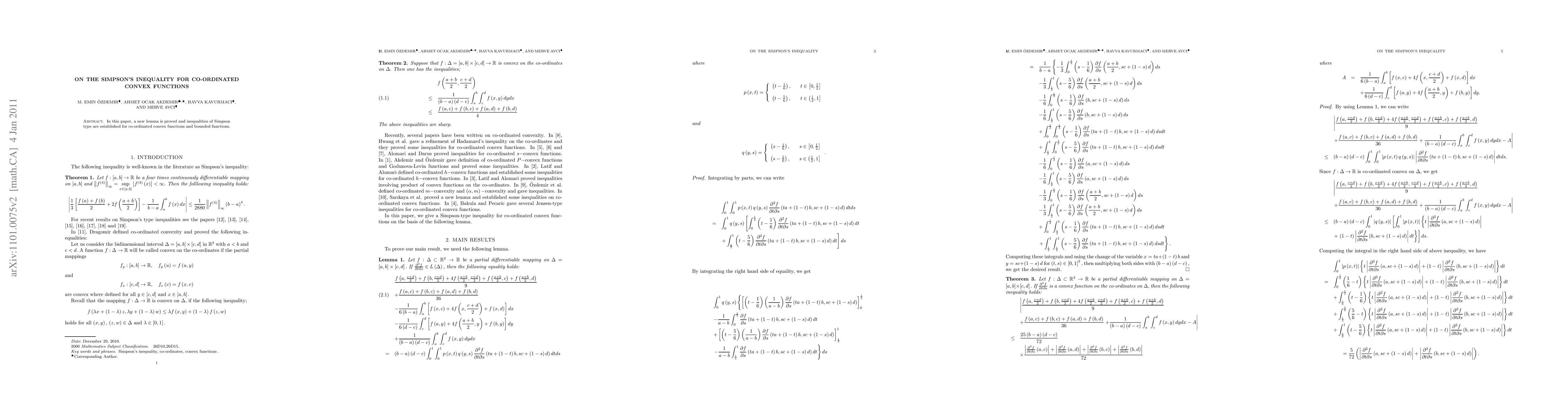 Summary: This paper introduces a new lemma and establishes Simpson-type inequalities for coordinated convex functions and bounded functions, contributing to the understanding of these mathematical constructs.