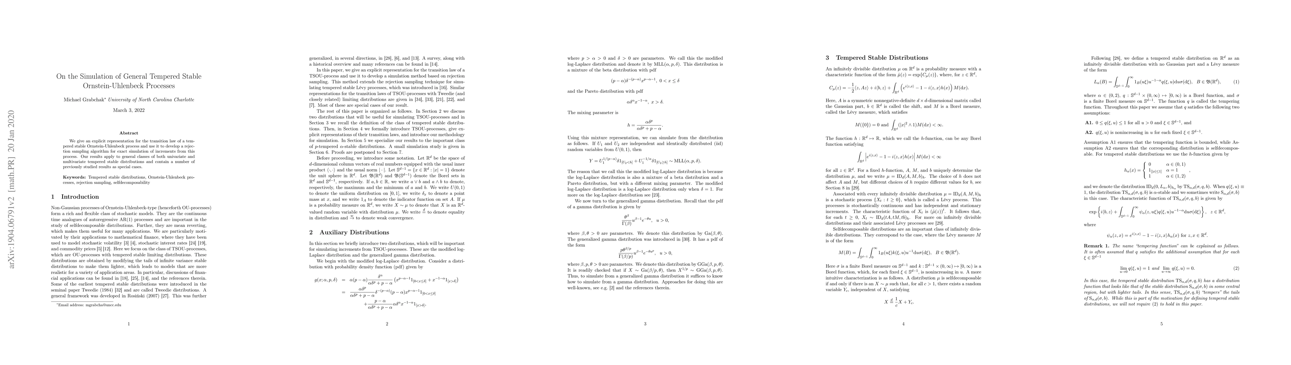 This paper presents an explicit representation for the transition law of tempered stable Ornstein-Uhlenbeck processes and develops a rejection sampling algorithm for their exact simulation, applicable to both univariate and multivariate cases. The method includes previously studied results as special cases.