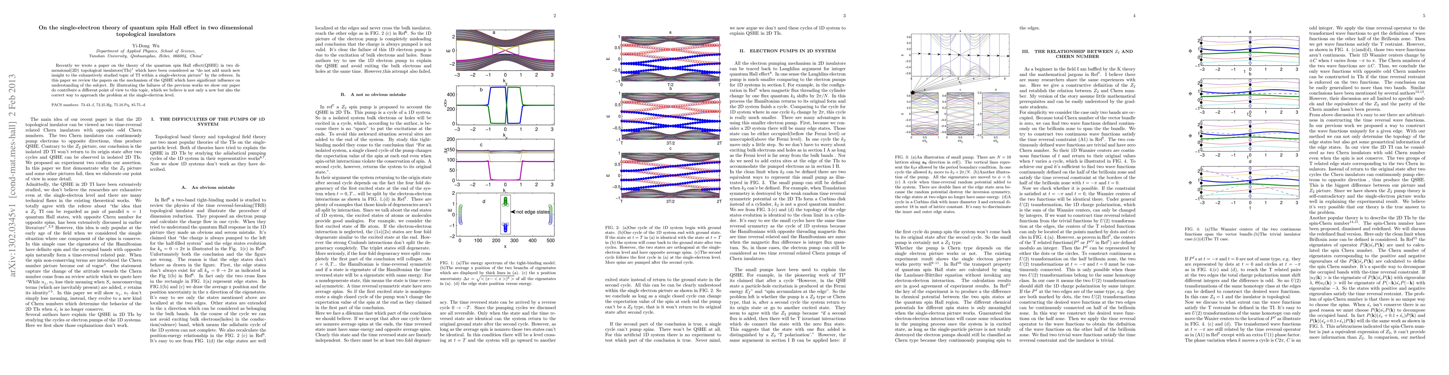 Recently we wrote a paper on the theory of the quantum spin Hall effect(QSHE) in two dimensional(2D) topological insulators(TIs)1 which have been considered as do not add much new insight to the exhaustively studied topic of TI within a single-electron picture by the referees. In this paper we review the papers on the mechanism of the QSHE which have significant influence on understanding of the subject. By illustrating the failures of the previous works we show our paper do contribute a different point of view to this topic, which we believe is not only a new but also the correct way to approach the problem at the single-electron level.