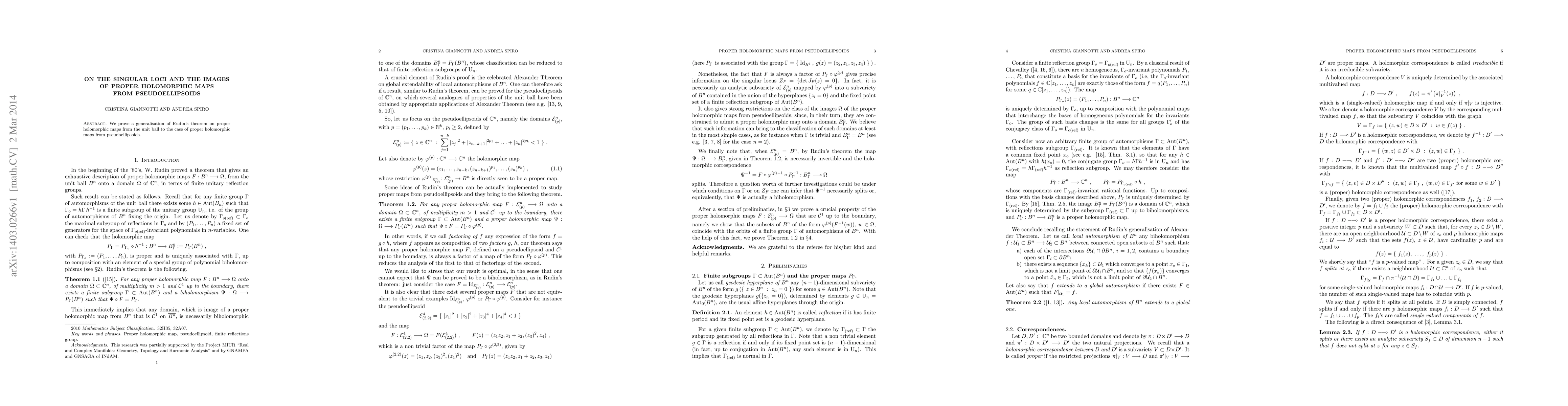 Summary: This paper generalises Rudin's theorem on proper holomorphic maps from the unit ball to pseudoellipsoids, establishing the singular loci and images of such maps. The results extend the understanding of proper holomorphic mappings in complex geometry.