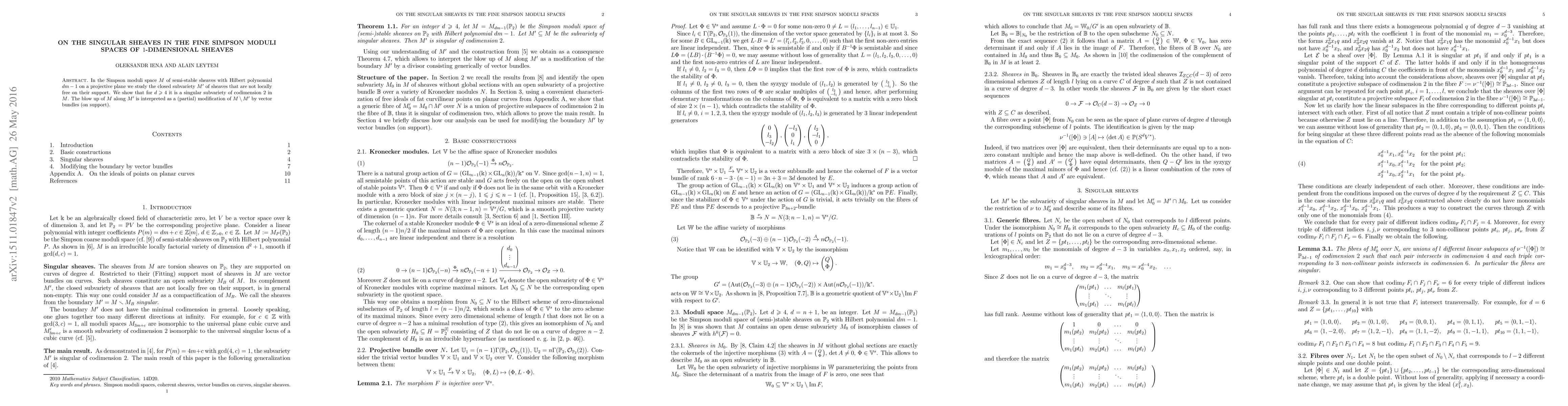 Summary: This paper investigates the closed subvariety $M'$ within the Simpson moduli space $M$ of semi-stable sheaves, demonstrating that for $d \geq 4$, $M'$ is a singular subvariety of codimension $2$. The blow-up of $M$ along $M'$ is analyzed as a modification of $M\setminus M'$ using vector bundles.