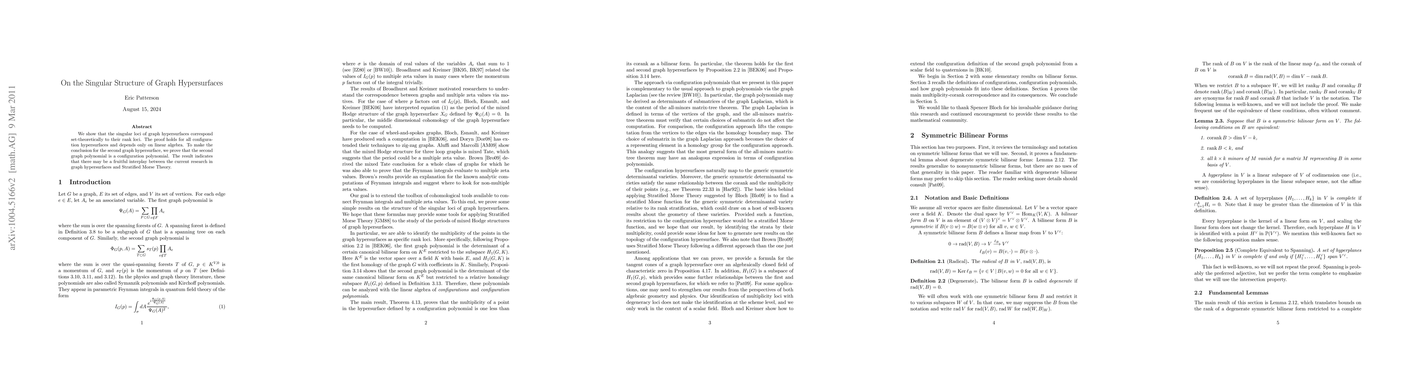 Researchers show that the singular loci of graph hypersurfaces match their rank loci set-theoretically, hinting at a connection between graph hypersurfaces and Stratified Morse Theory.