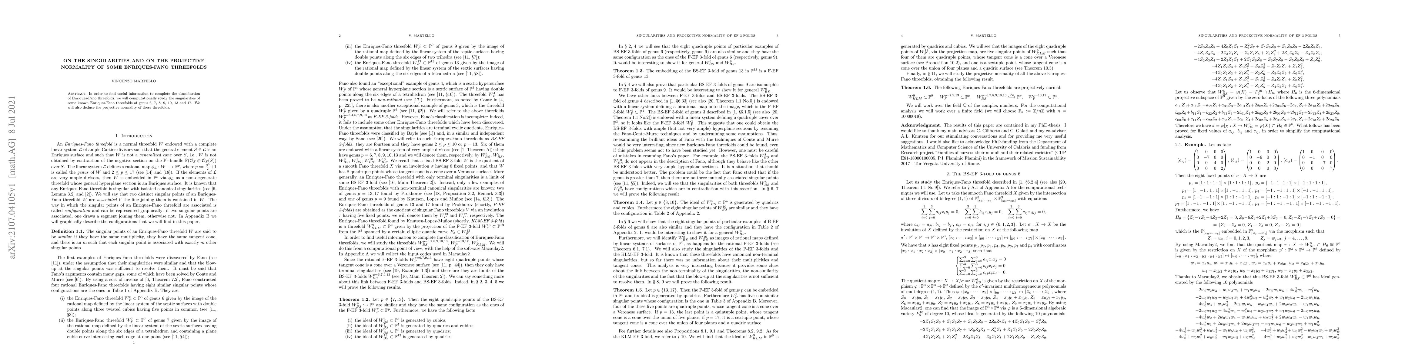 This paper computationally investigates the singularities of selected Enriques-Fano threefolds of various genera and deduces their projective normality to aid in the classification of such threefolds.