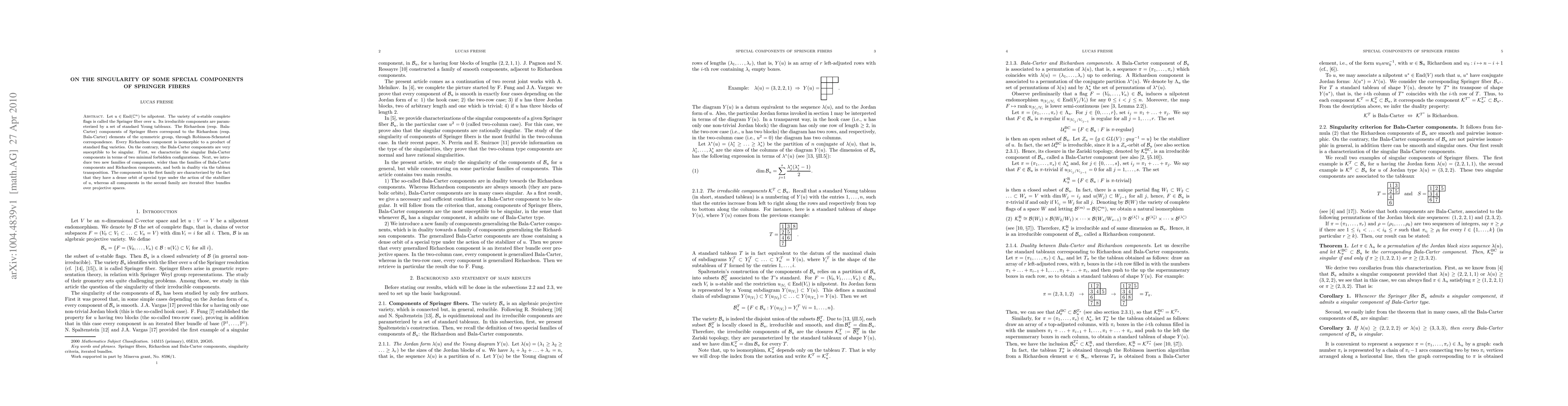The paper introduces new component families and provides a characterization of singular Bala-Carter components, extending previous work on Springer fibers.