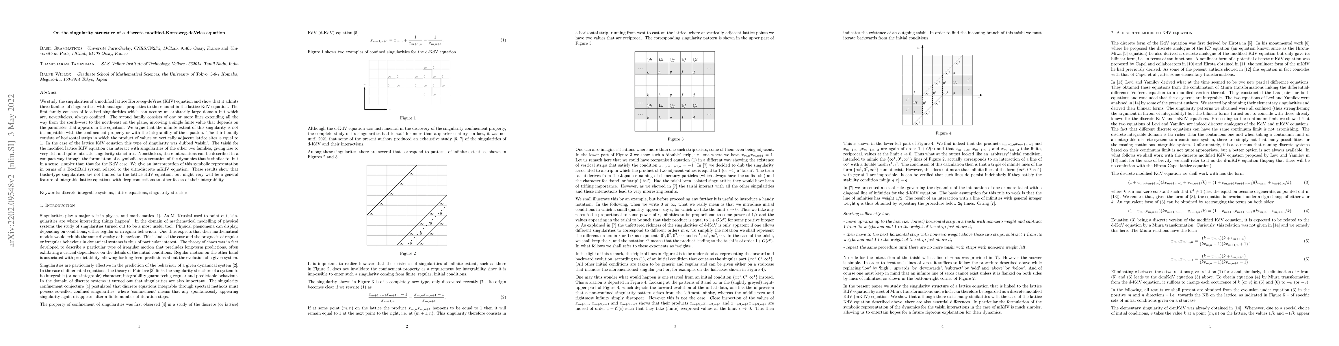 This paper investigates the singularity structure of a modified lattice Korteweg-deVries equation, identifying three families of singularities analogous to those in the lattice KdV equation, including confined localised singularities, infinite lines, and horizontal strips termed "taishi." The study reveals intricate interactions among these singularities and proposes a symbolic representation for their dynamics.