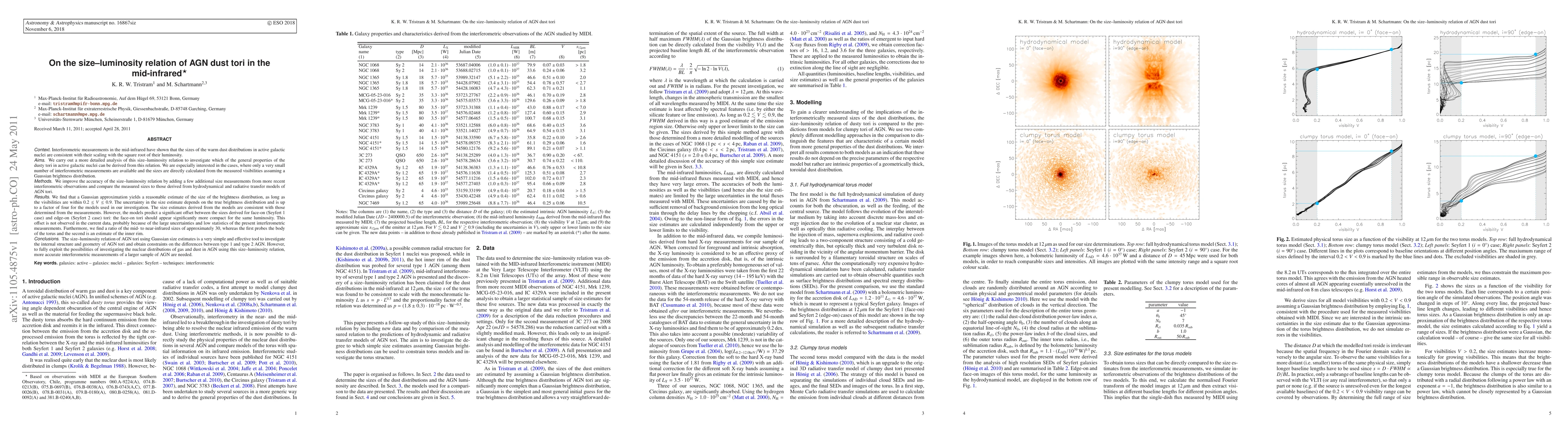 This paper investigates the size-luminosity relation of AGN dust tori in the mid-infrared, finding that their sizes scale with the square root of their luminosity. The study uses improved interferometric measurements and model comparisons to suggest that Gaussian approximations provide reasonable size estimates for the brightness distribution.