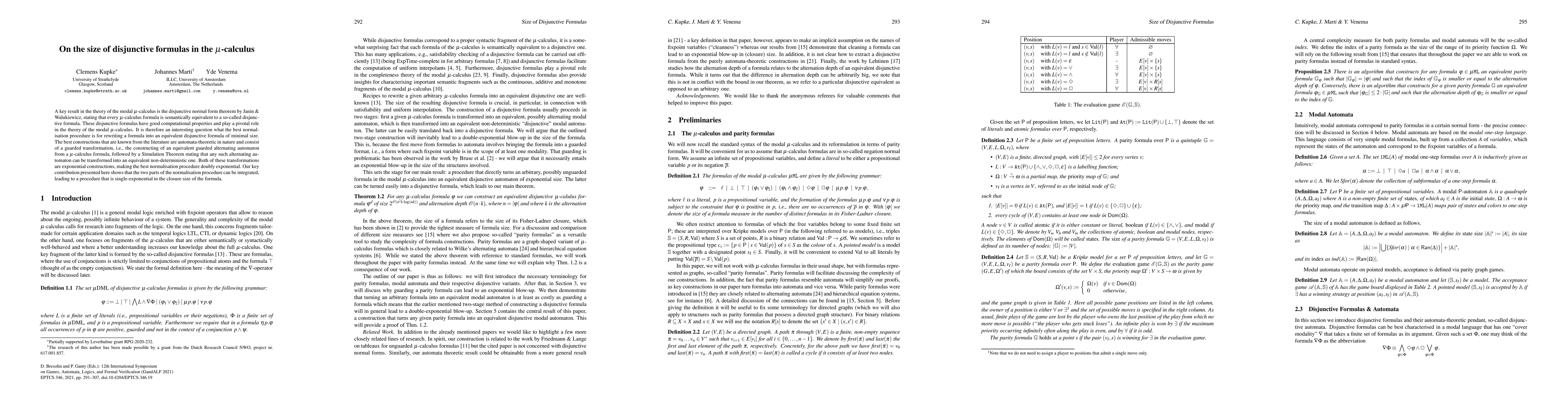 This paper investigates the size of disjunctive formulas in the modal mu-calculus, demonstrating that the best normalization procedure can be improved from doubly exponential to single-exponential in the closure size of the formula by integrating the guarded transformation and simulation steps.
